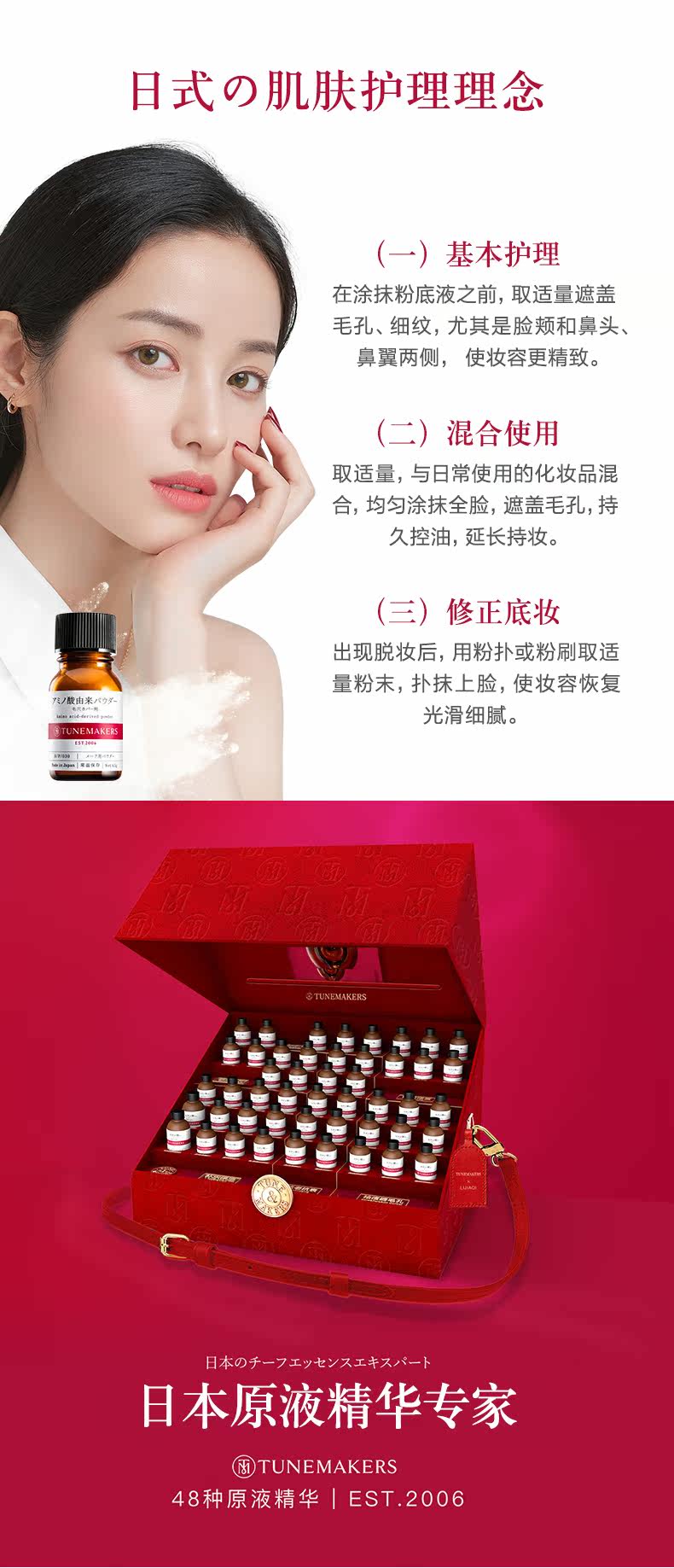Тунтемейкеры, японская аминокислотная порошка порошка, сглаживаемой сглаживающейся кожи, эссенция текстуры