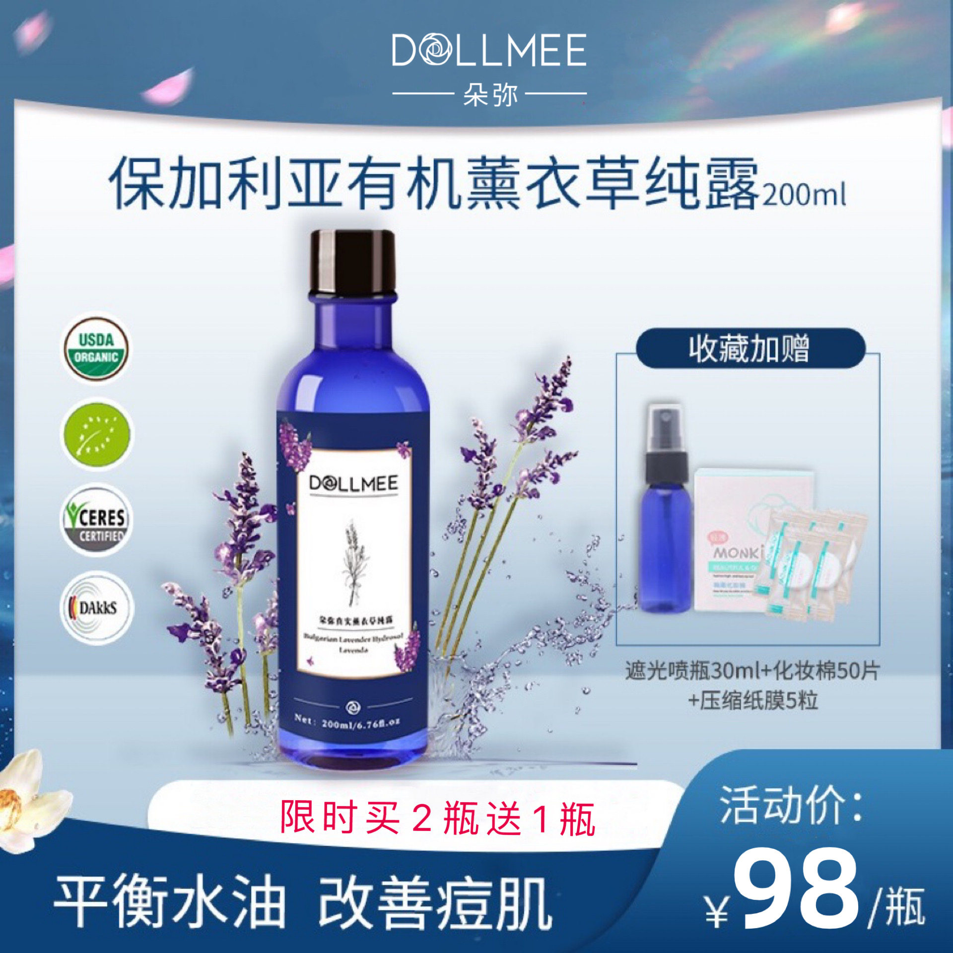 Натуральный лавандовый гидролат, увлажняющий спрей, влажное масло, тонер, контроль жирного блеска, скрывает прыщи