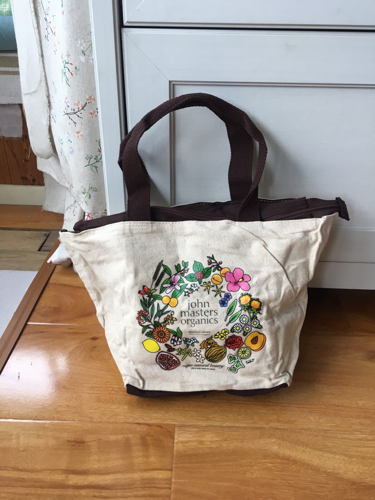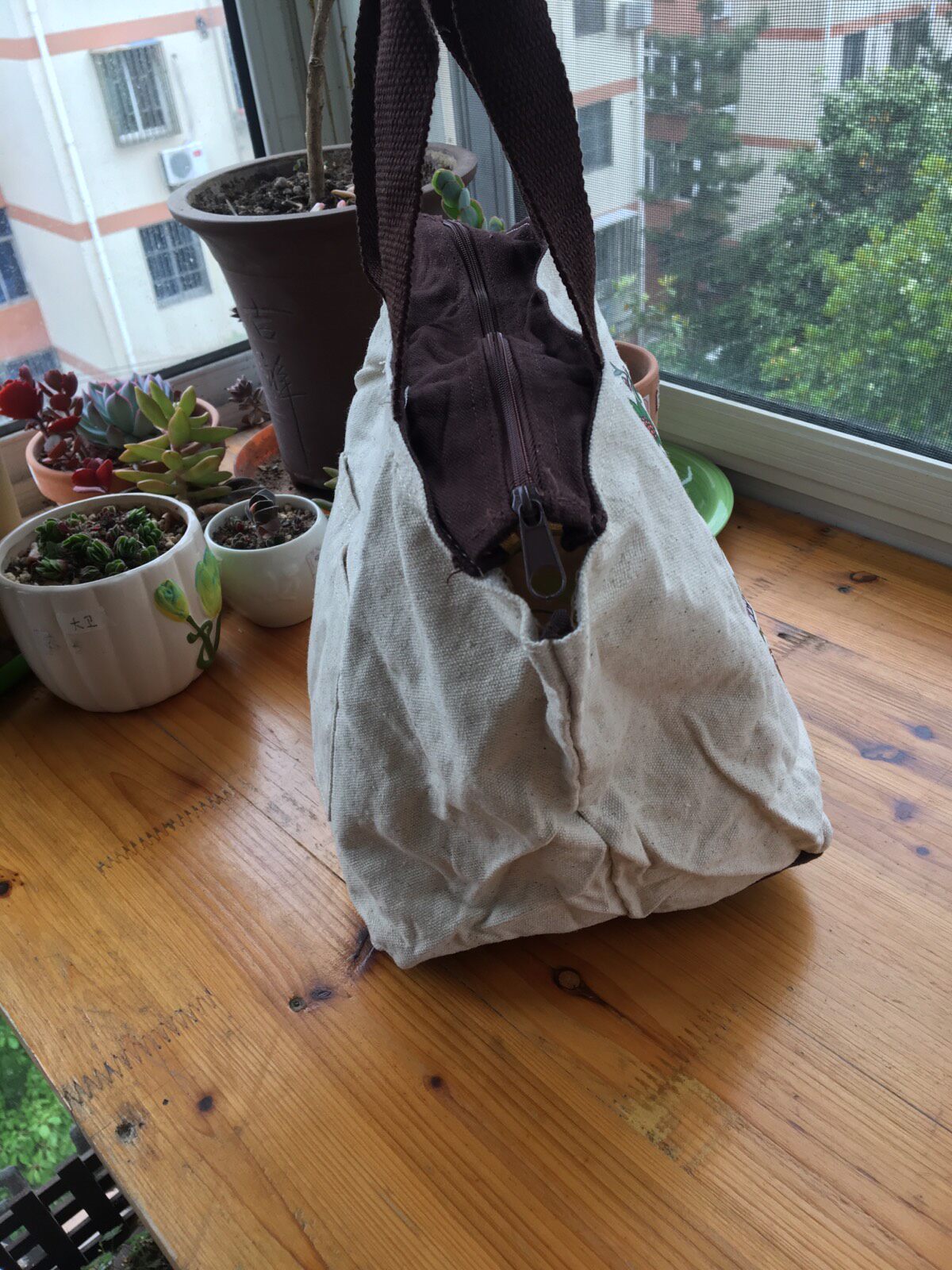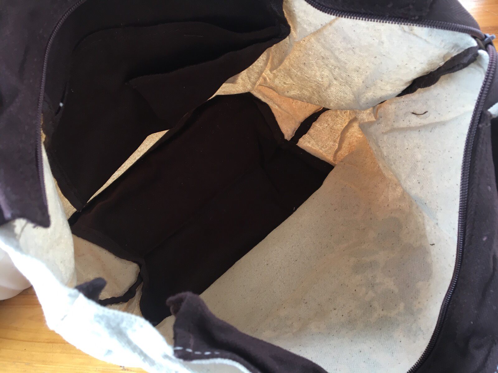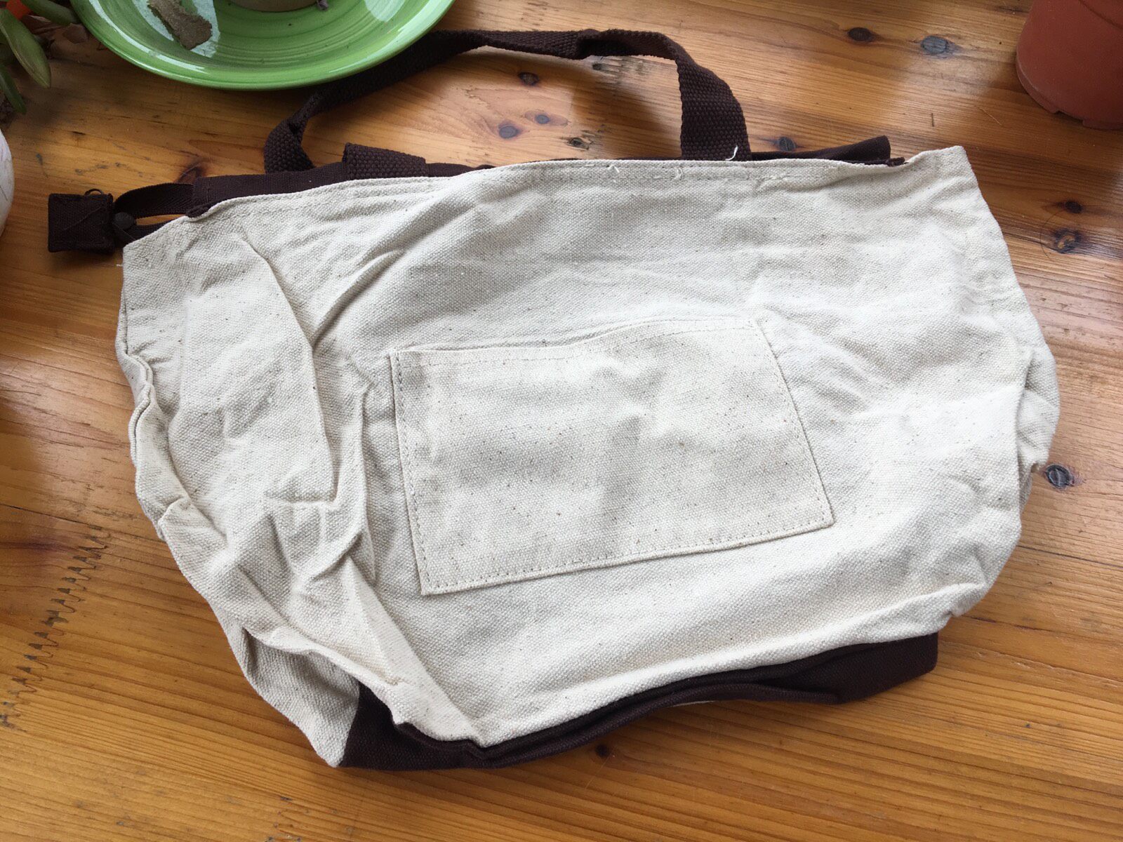 Сумка - это бежевый хлопок.