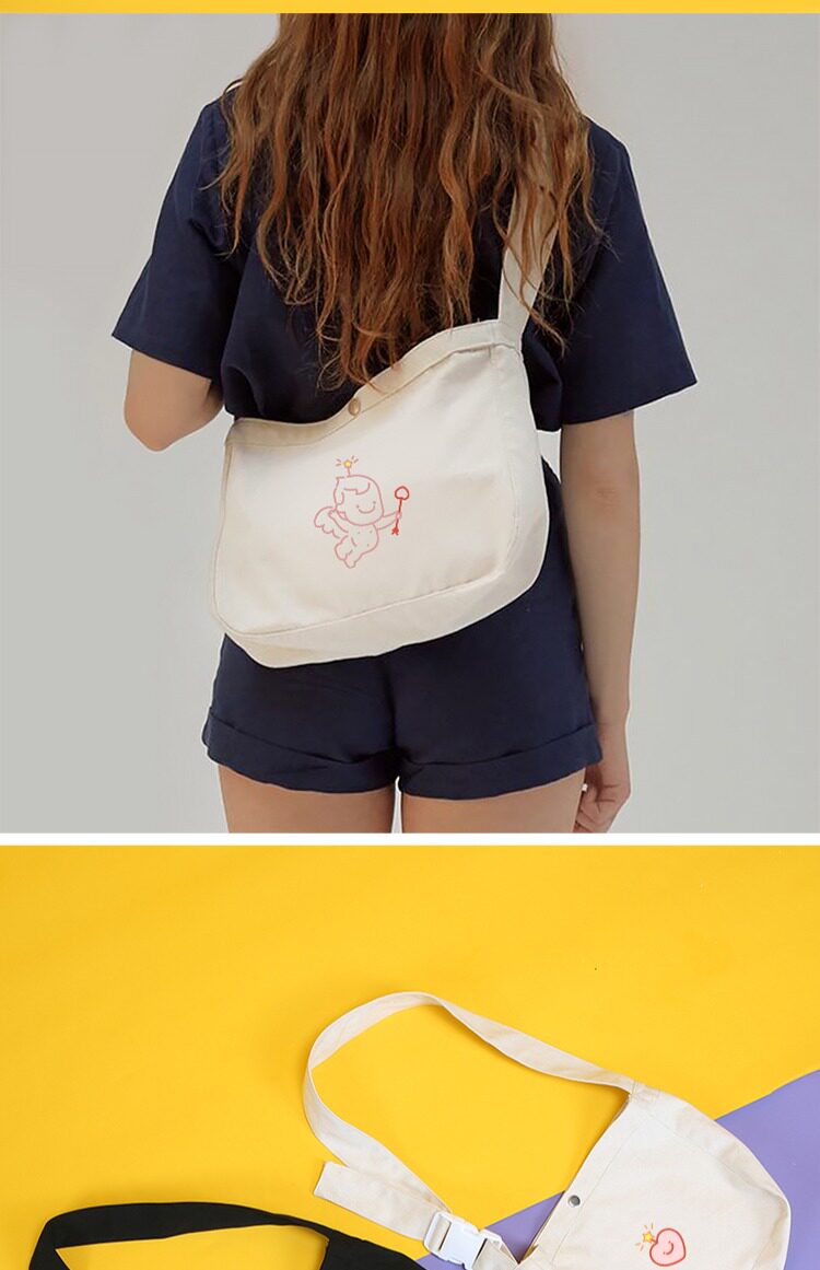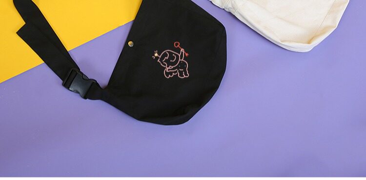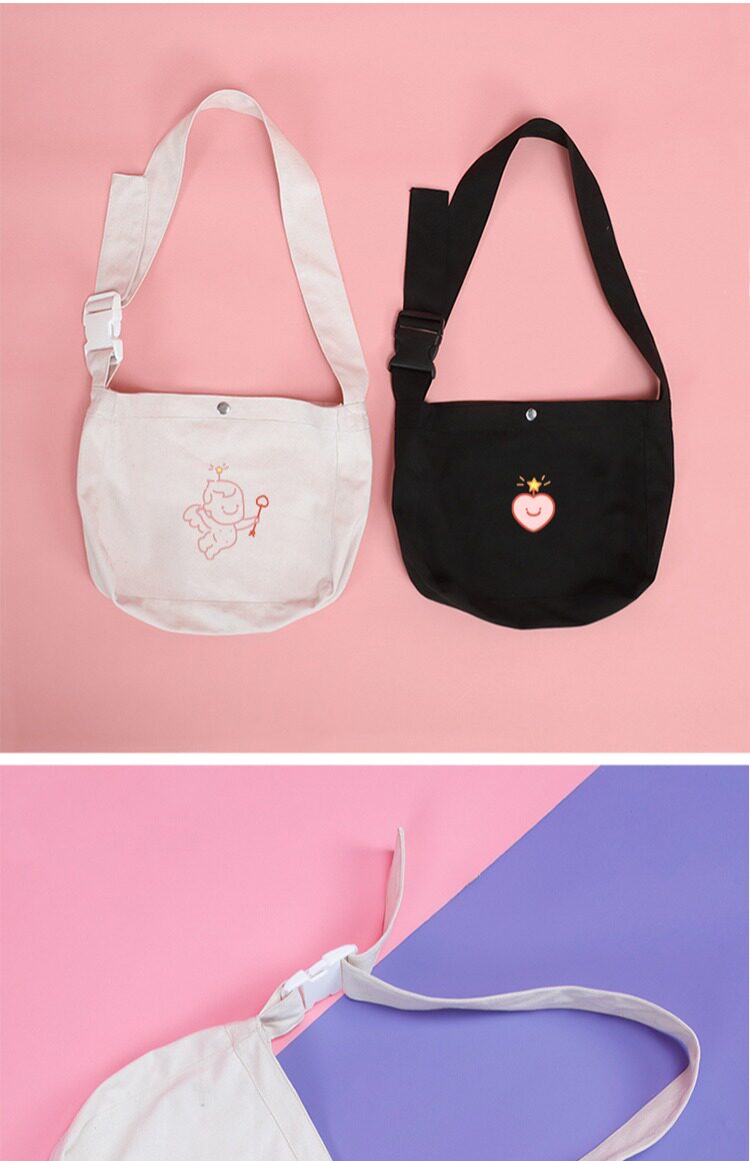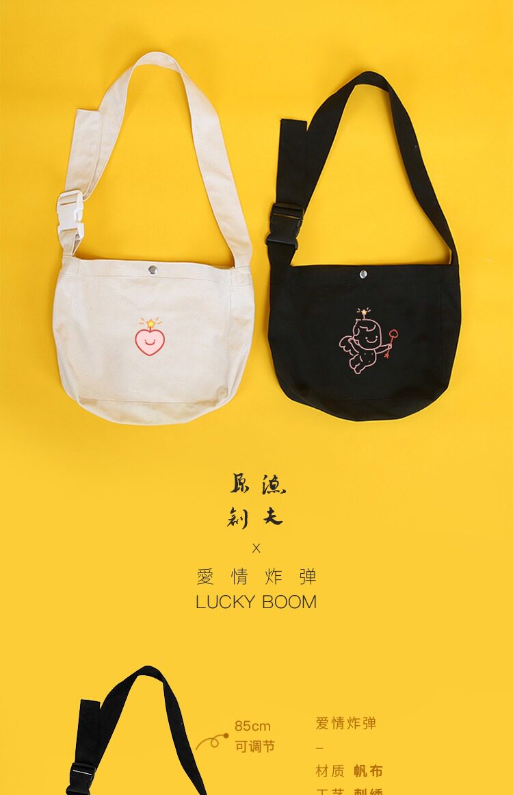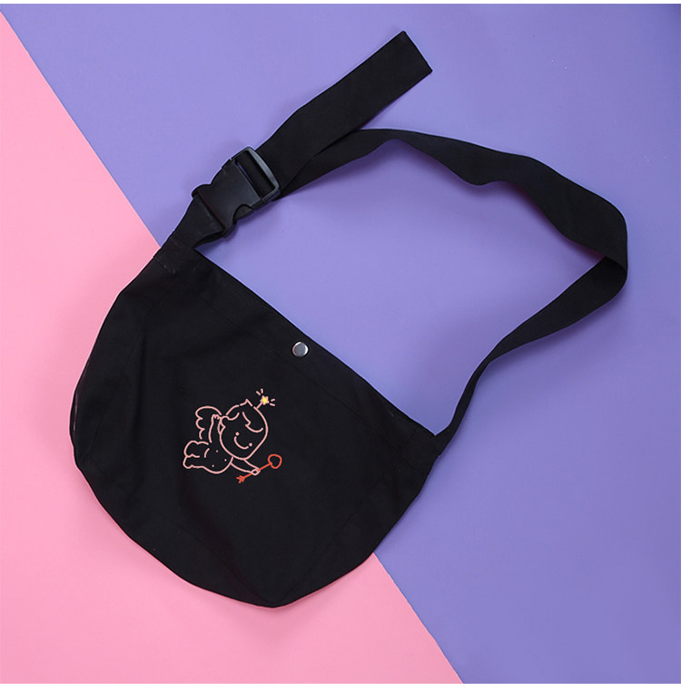 Оригинальная сумка через плечо, шоппер, черный милый модный тканевый мешок, с вышивкой