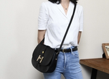 Классическая матовая черная, простая текстура, очень красивая седельная сумка.