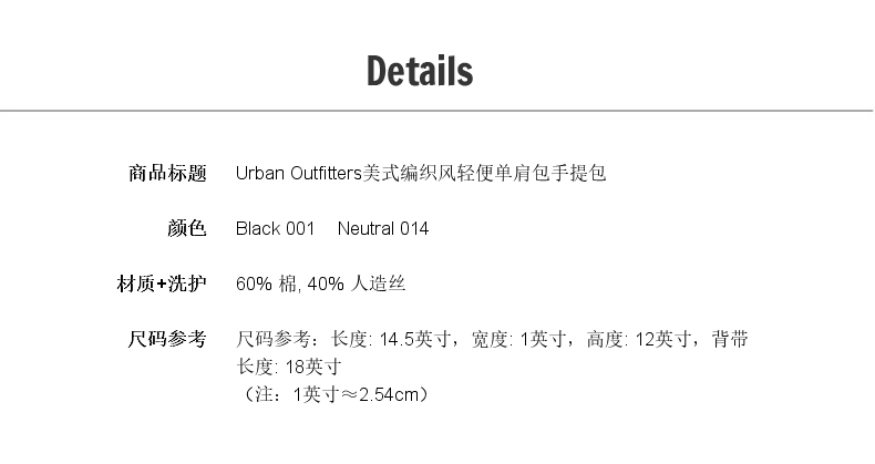 Простая ветер сотканная сумочка Urban Outfitters American Fashion Light Lady Lady Mss Mass Sag Sag