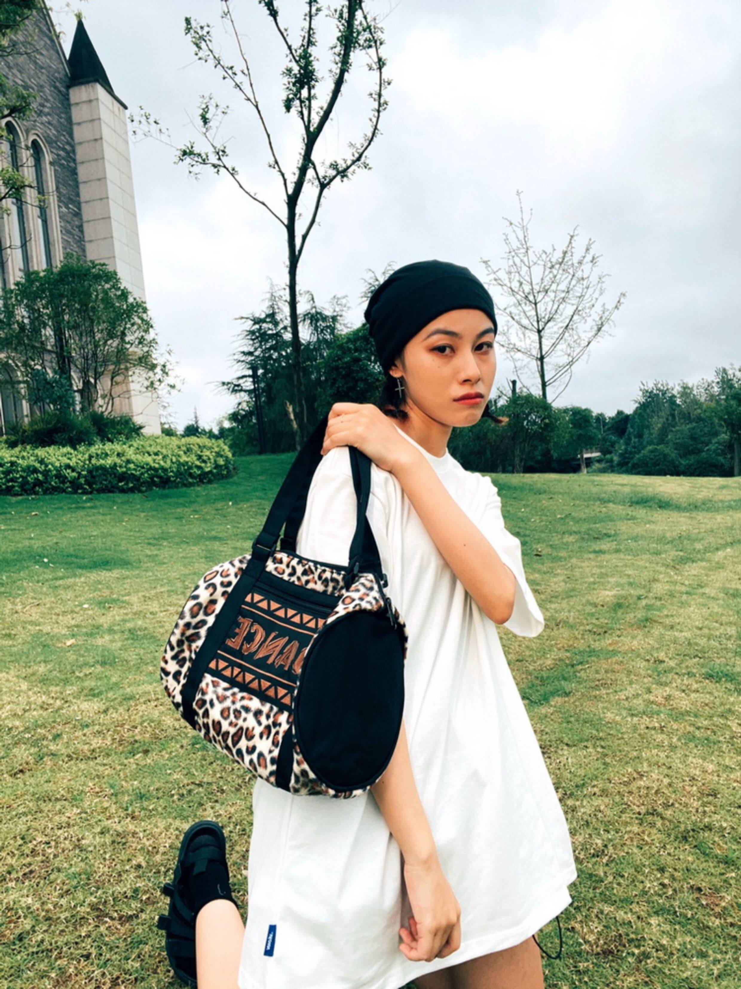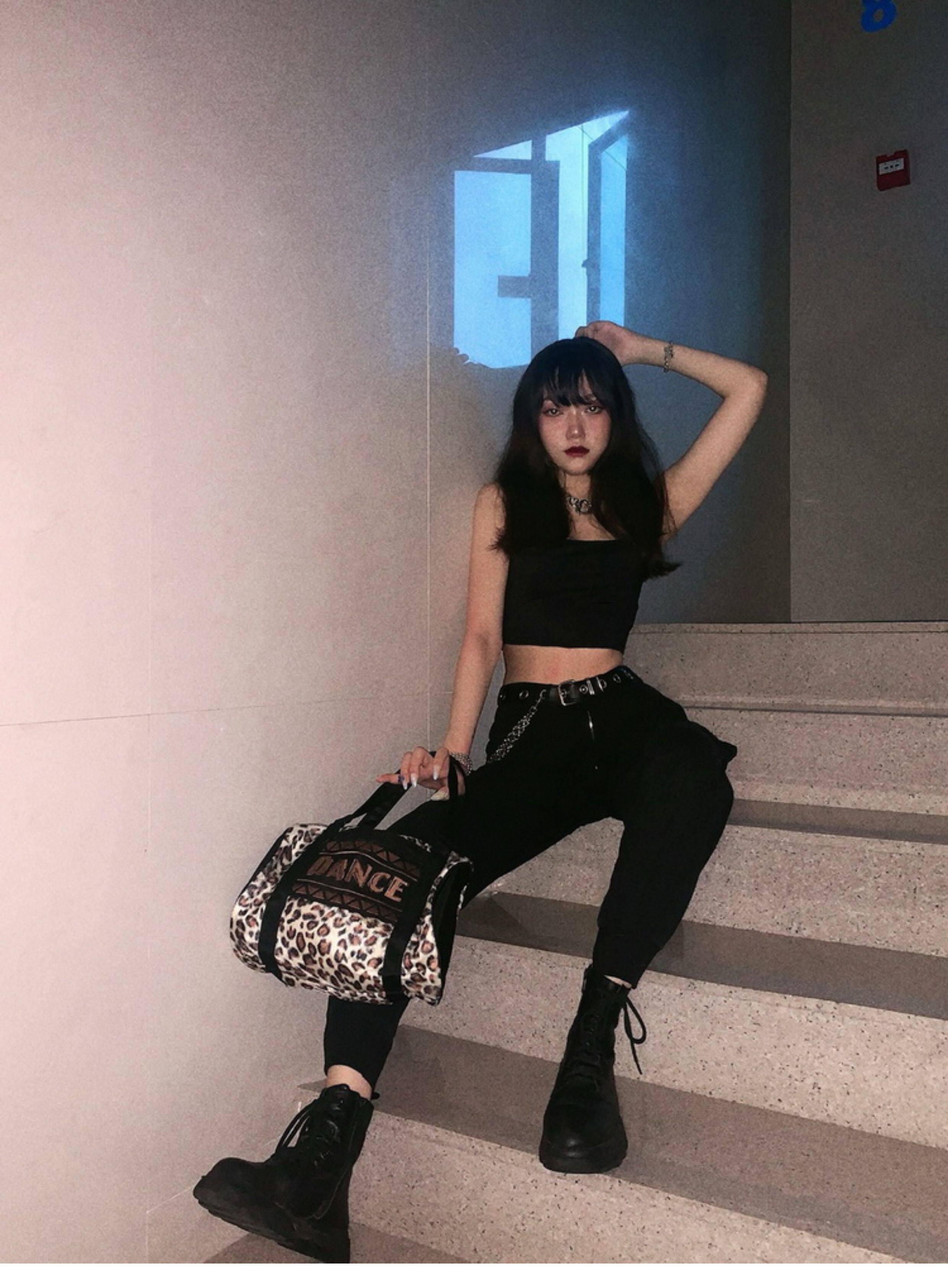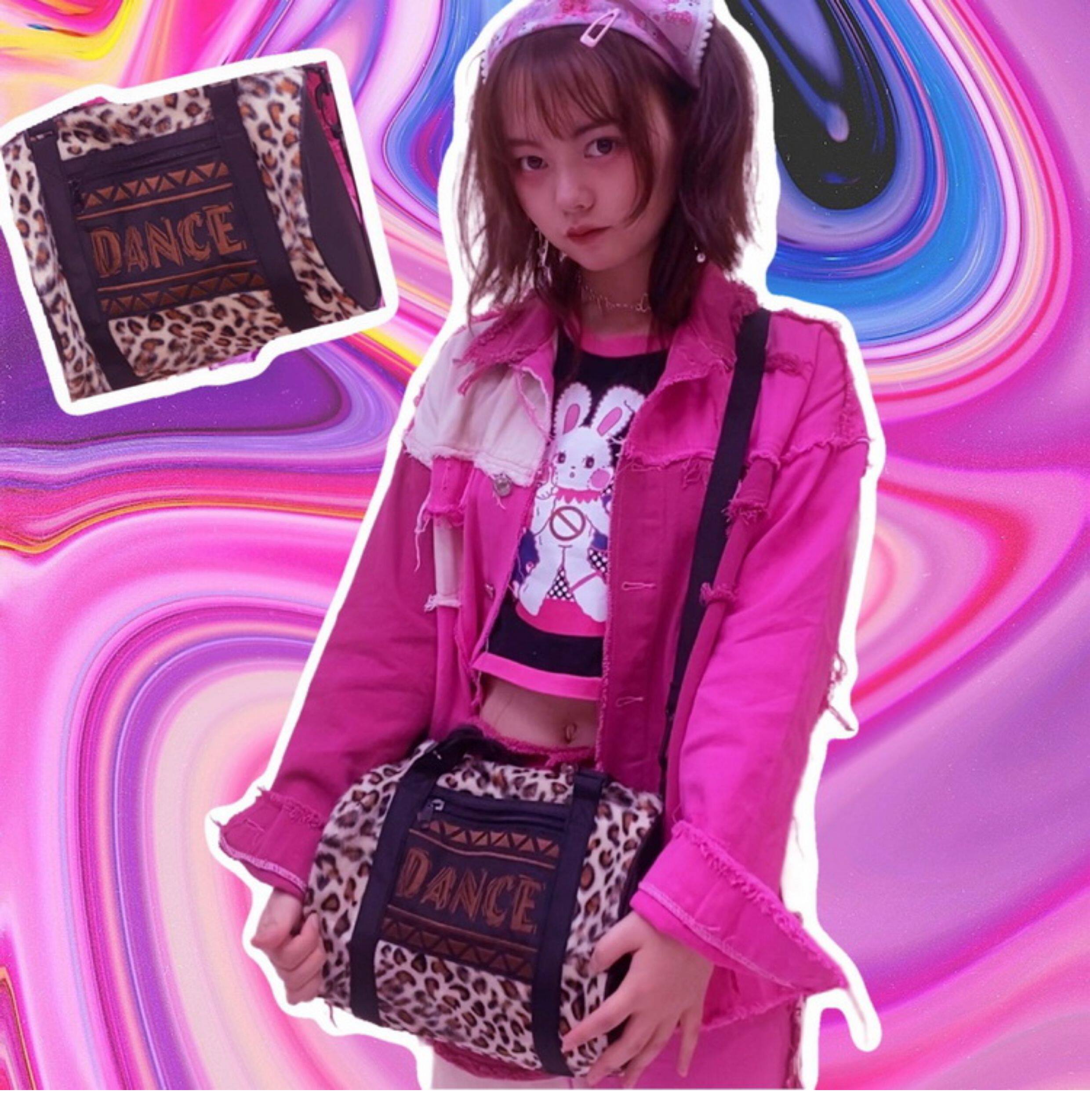 Экспортная редкая винтажная нишевая ретро-ниша DANCE с вышивкой букв и леопардовым принтом, сумка подмышки, цилиндрическая классная сумка