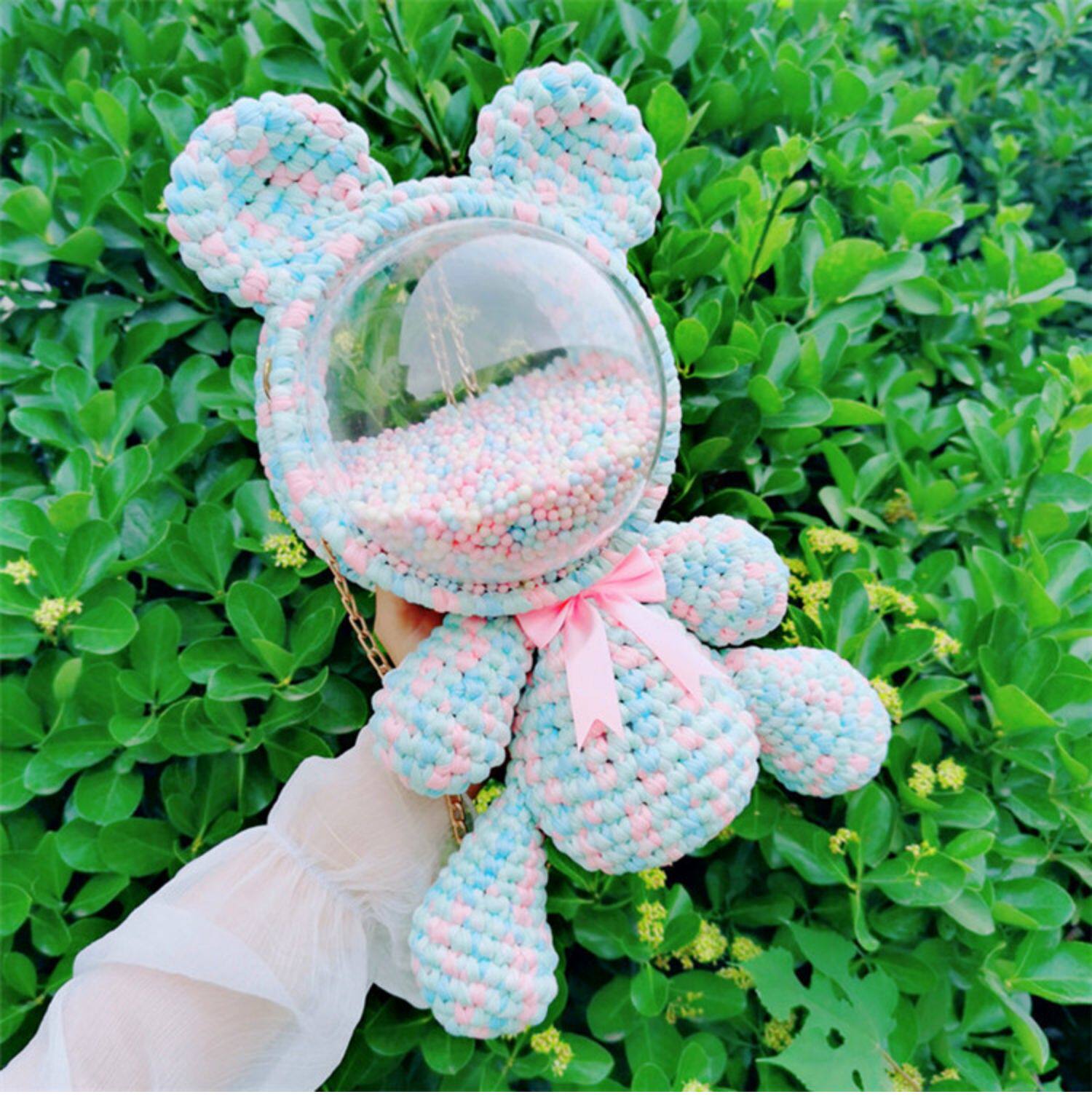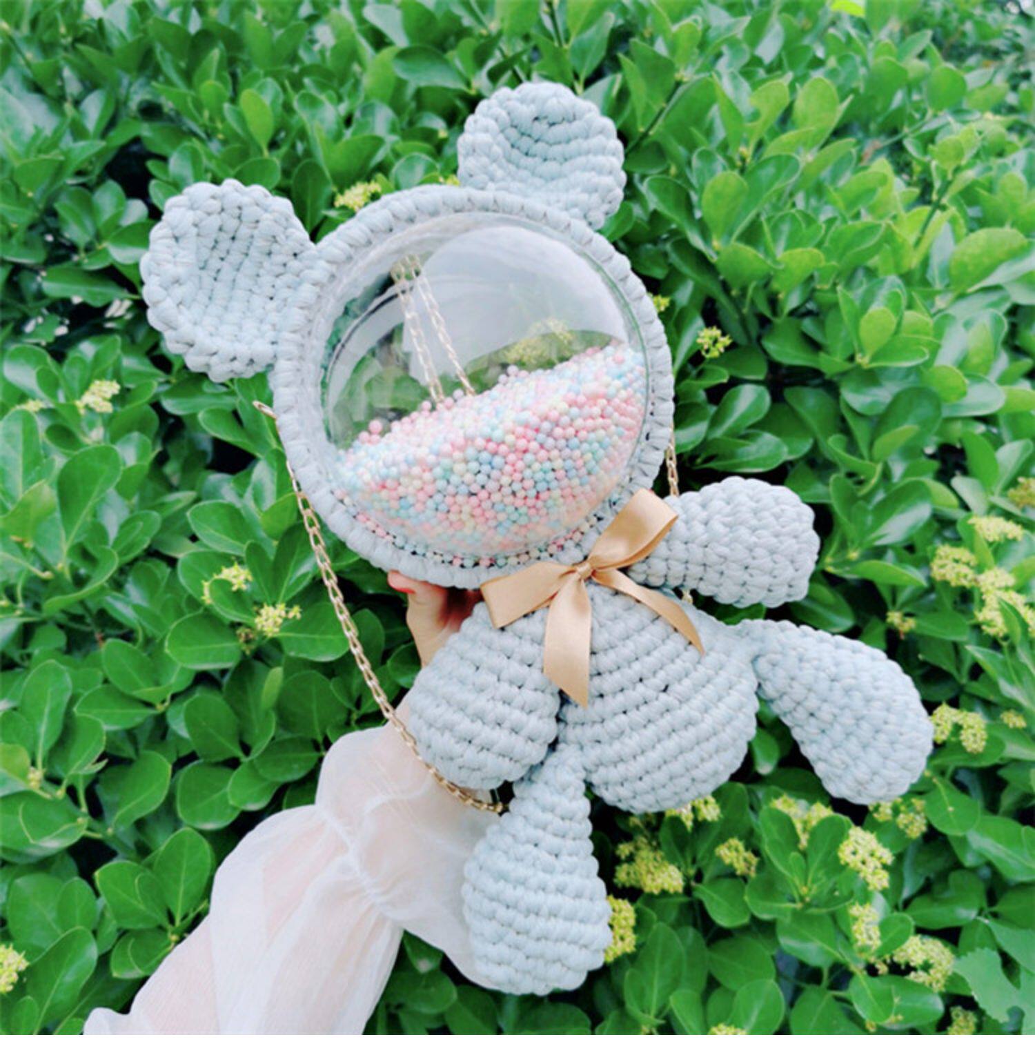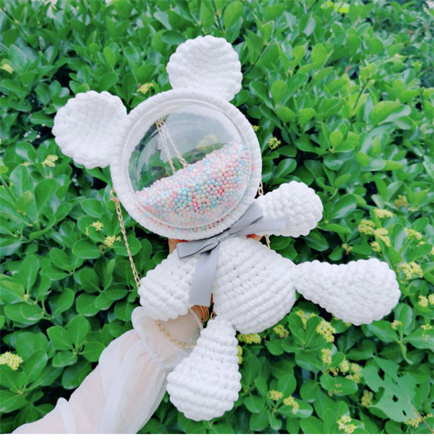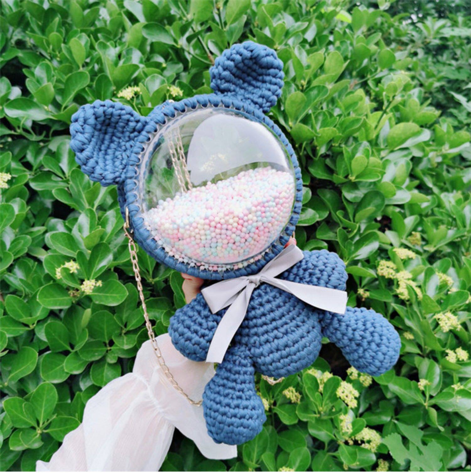 Плетеный набор материалов ручной работы, прозрачная небольшая сумка, сумка через плечо, ремешок для сумки, с медвежатами, DIY, популярно в интернете