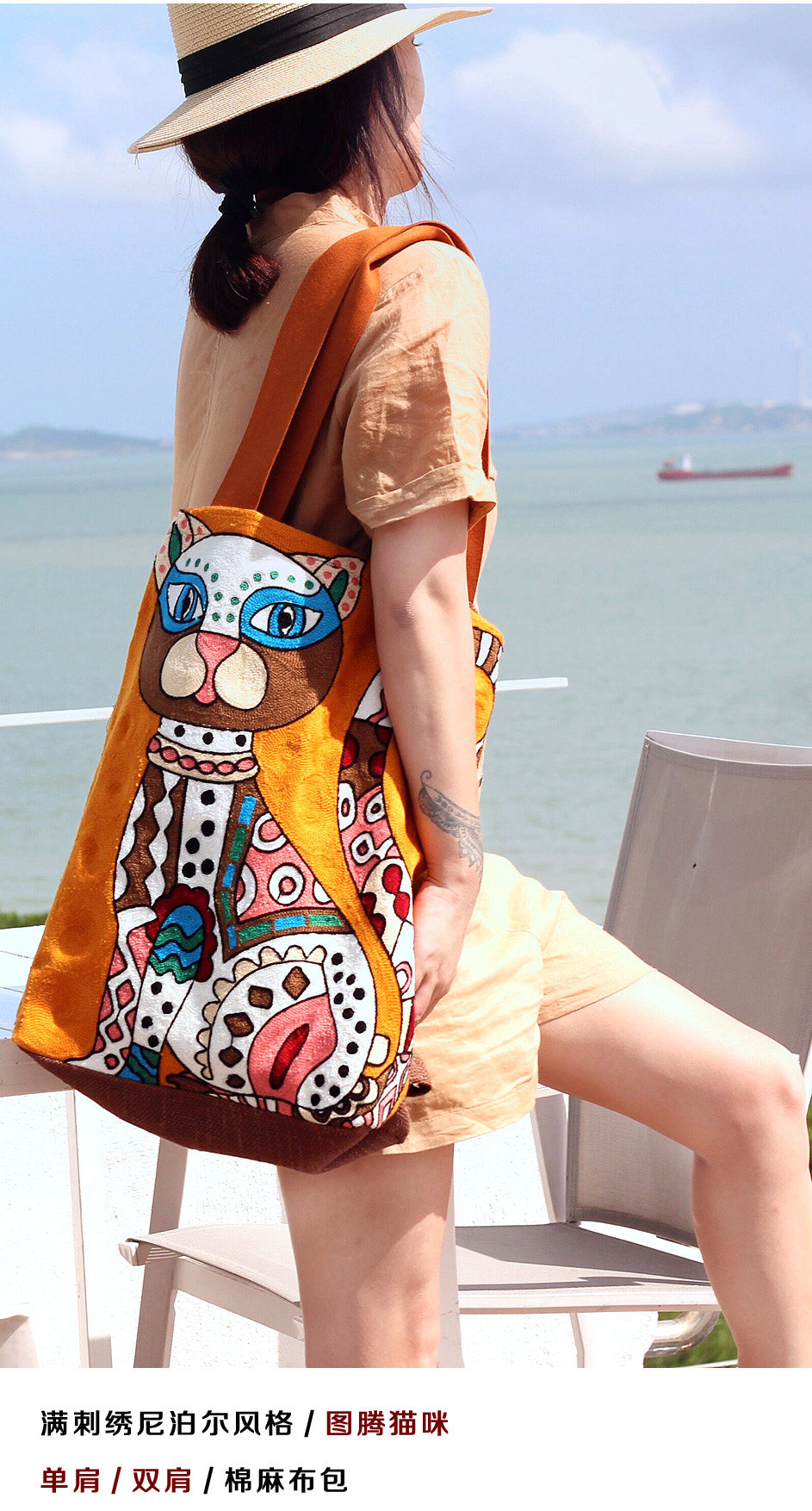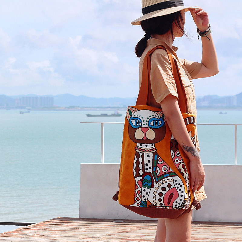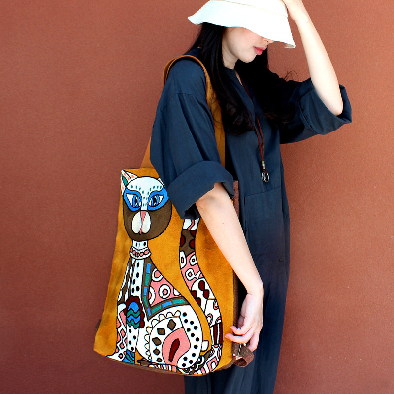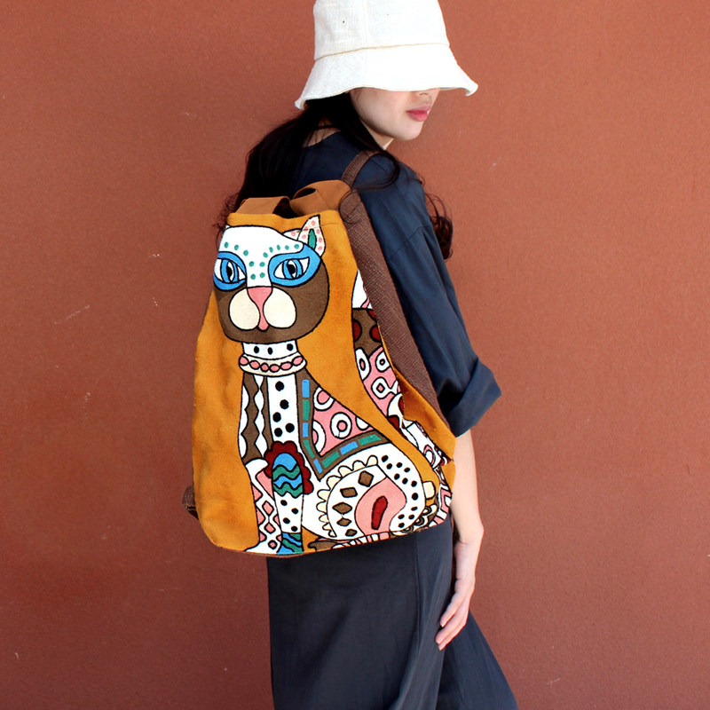 Оригинальная сумка для путешествий, рюкзак, с вышивкой, из хлопка и льна