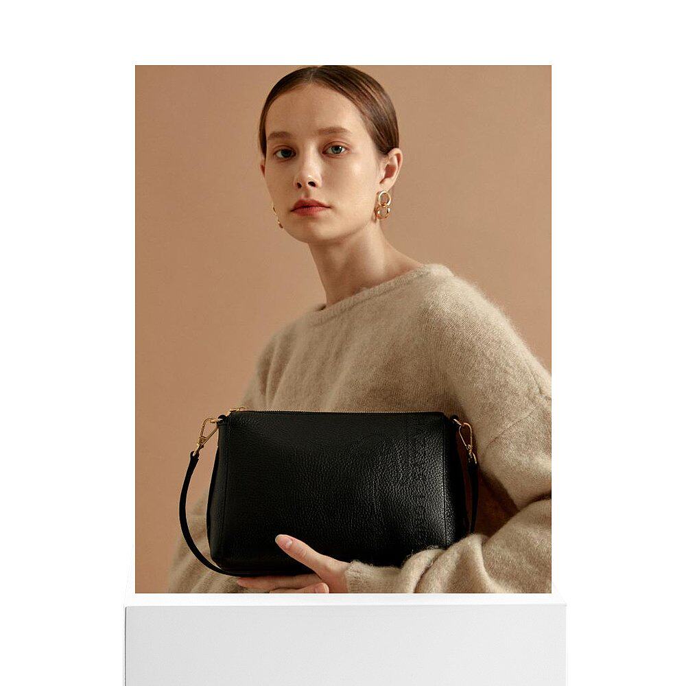 Южная Корея прямая почтовая почта Hazzys Hajis черная кожаная перфорированная логотип логотип Crossbody Sag Hiba0e211bk