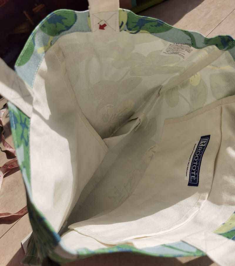 Зеленые цветы, полосатые водонепроницаемые сумки для покупок, водонепроницаемое покрытие внутри, это относительно твердое, но у него нет вкуса.