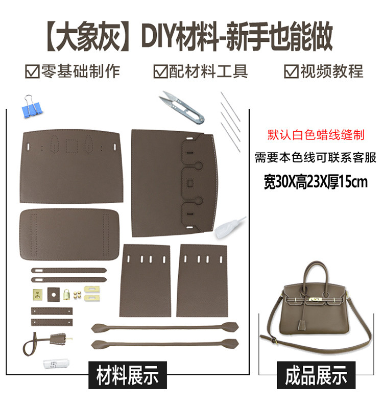 Сумка, кожаный платиновый портативный набор материалов, DIY, слон, из натуральной кожи