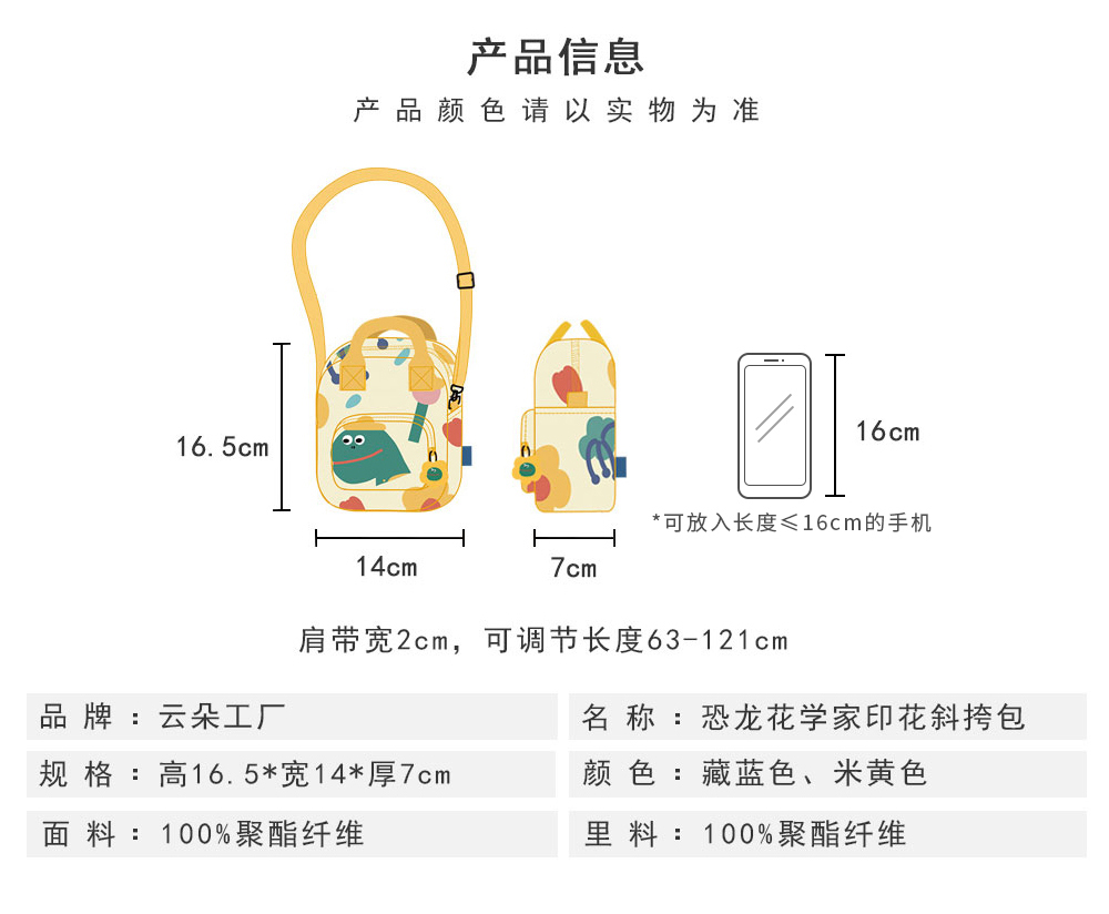 云朵工厂 Динозавр, сумка через плечо, оригинальная свежая сумка на одно плечо