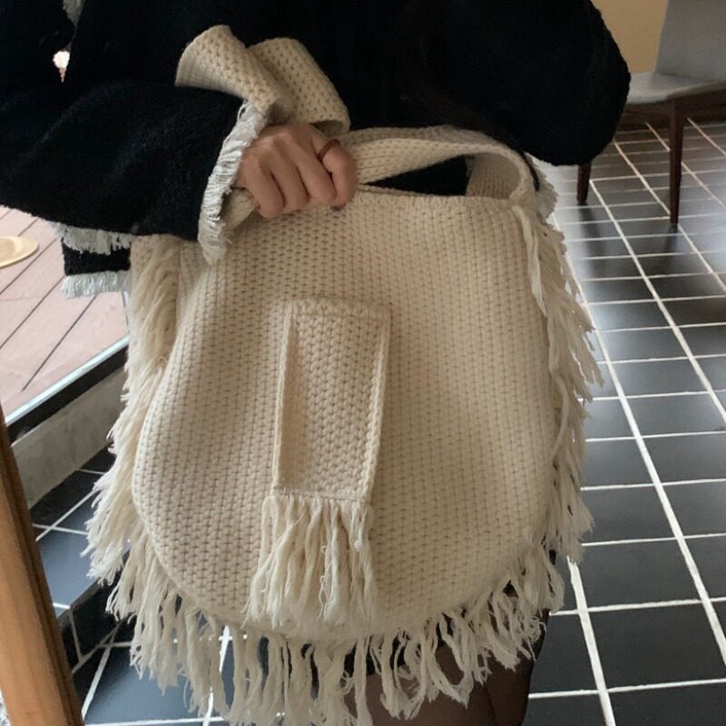 Демисезонная ретро трикотажная сумка на одно плечо, вместительная и большая сумка через плечо, в корейском стиле