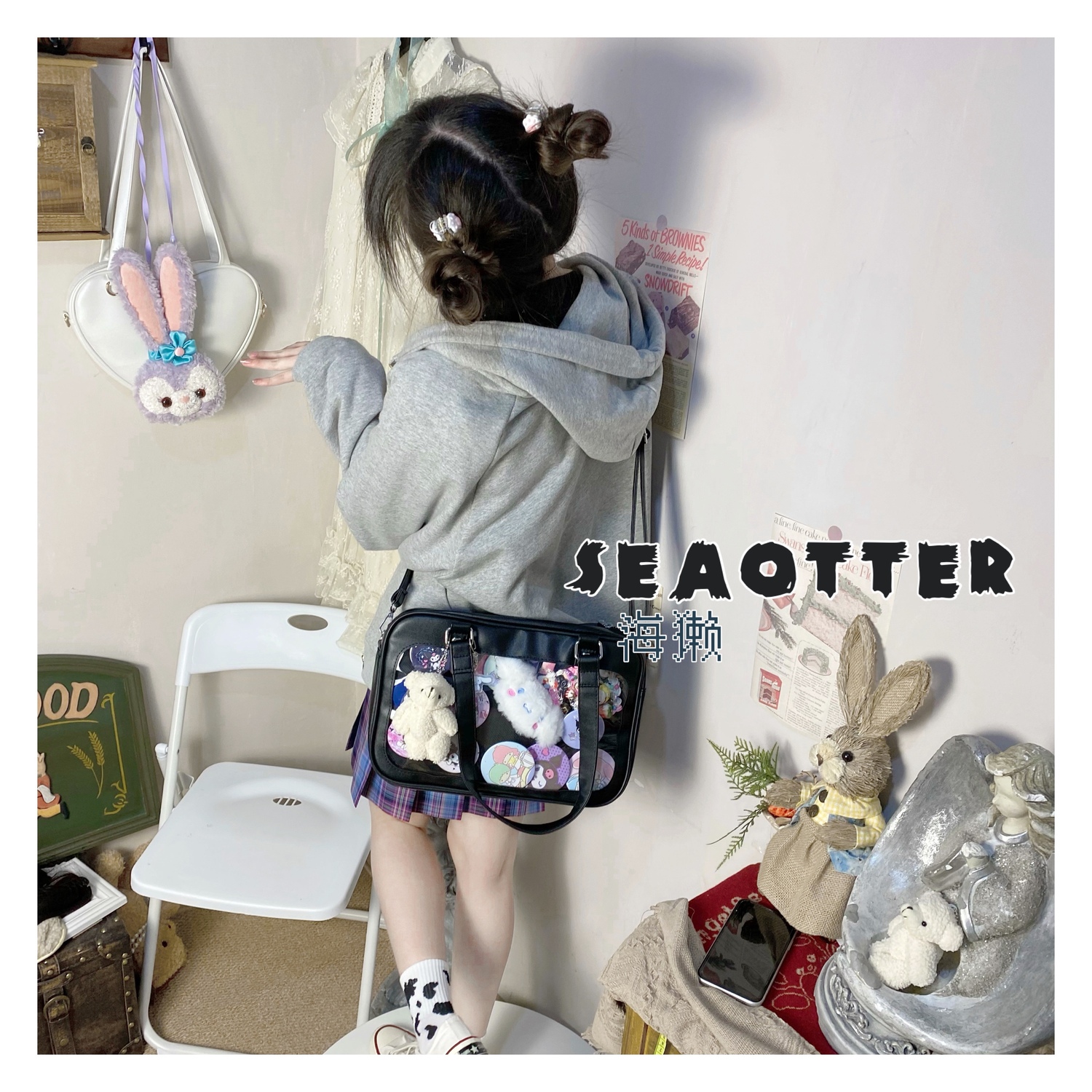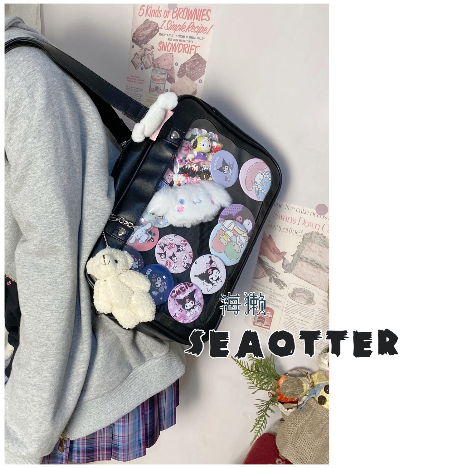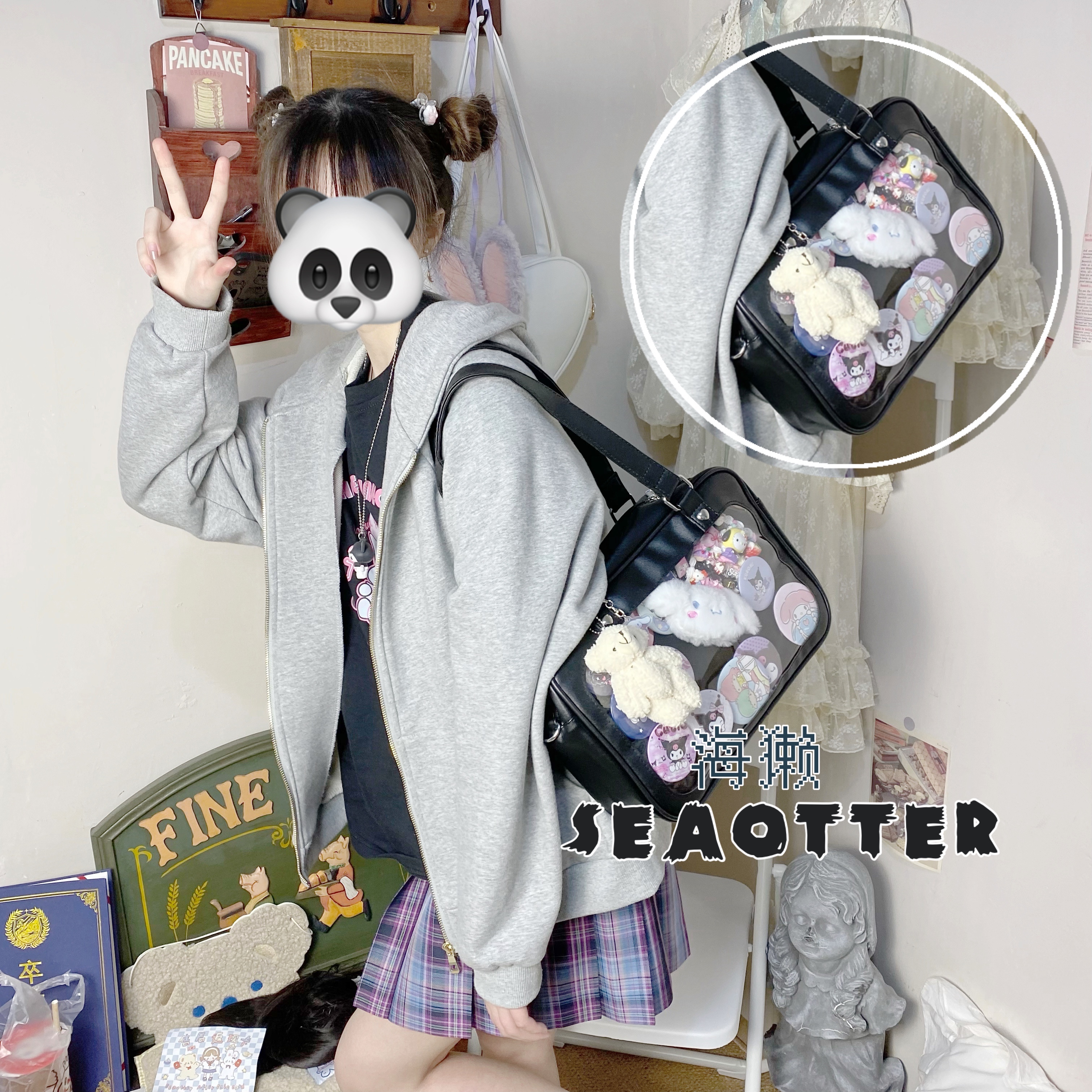 Sea Otter-Pain упаковывает большие возможности, о, японская японская новая упаковка JK Двумерная прозрачная прозрачная студентка-зефир ребенок