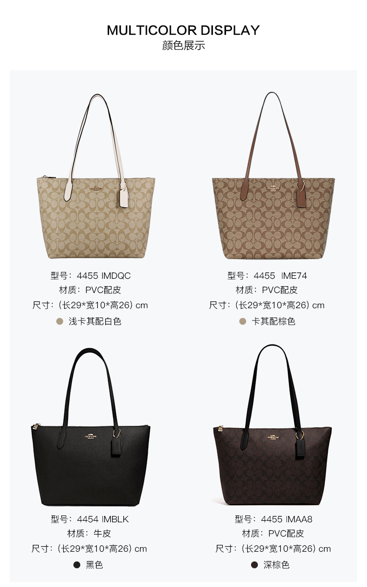 [Самостоятельное управление] COACH/COACH Большая сумка на молнии Сумка через плечо Сумка для покупок Mommy Bag 4455 Роскошная женская сумка