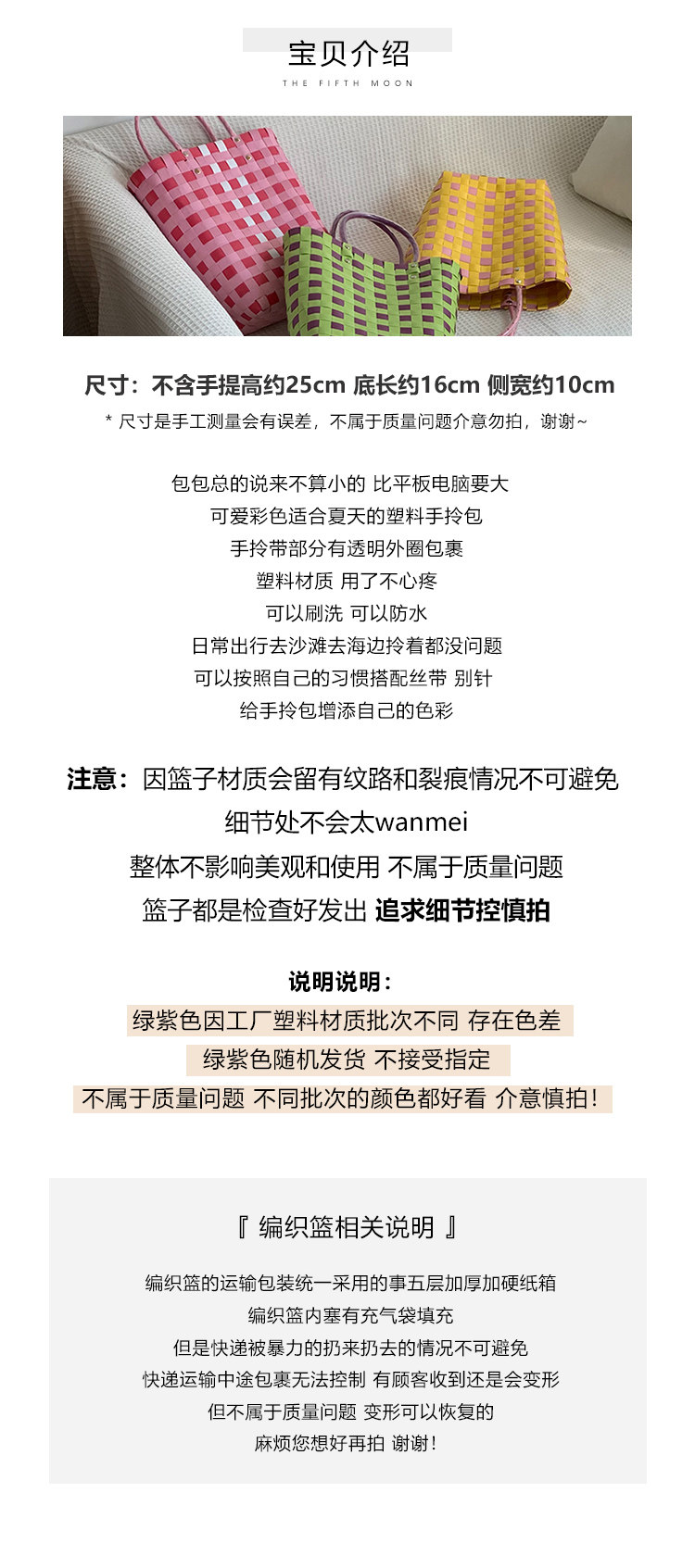 Thefithmoon милая красочная свежая пластиковая пластиковая плетена