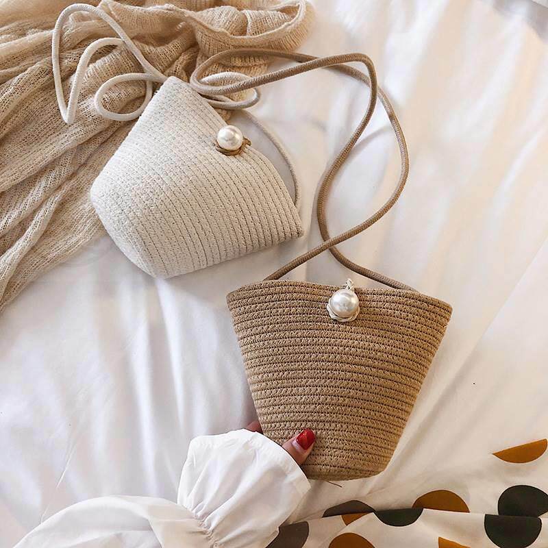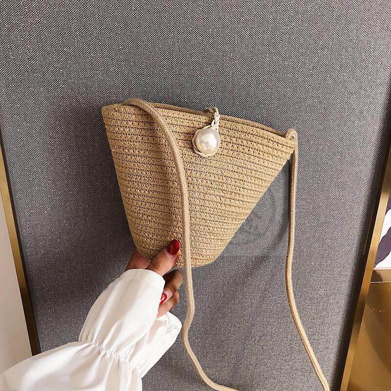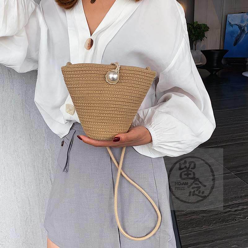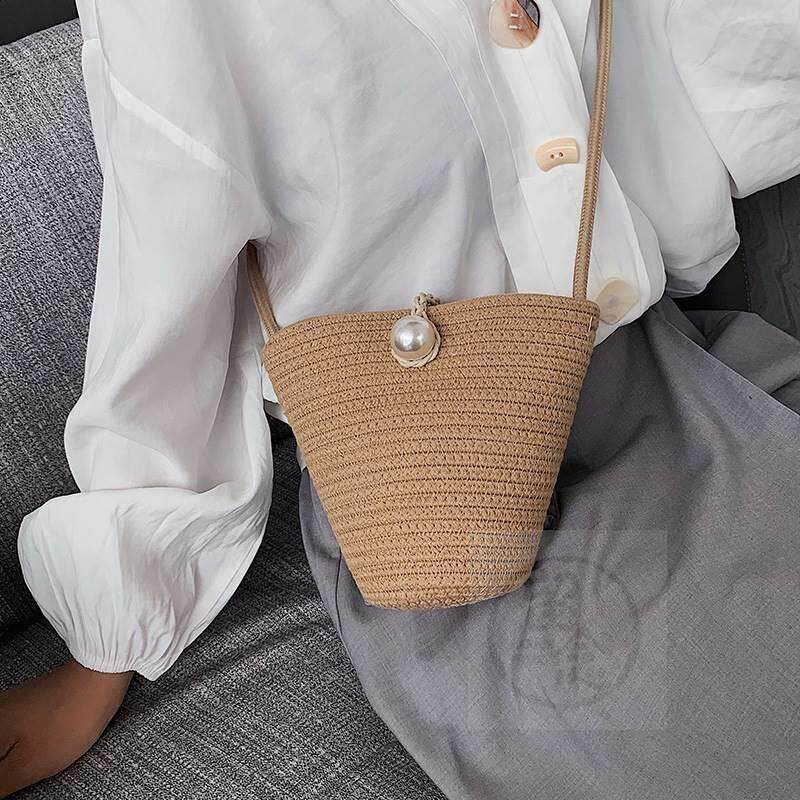 -Недостатковая сумка для ведра женская сумка Новая летняя соломенная солома для сплетни B Крест B
