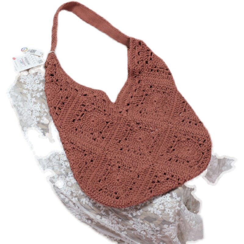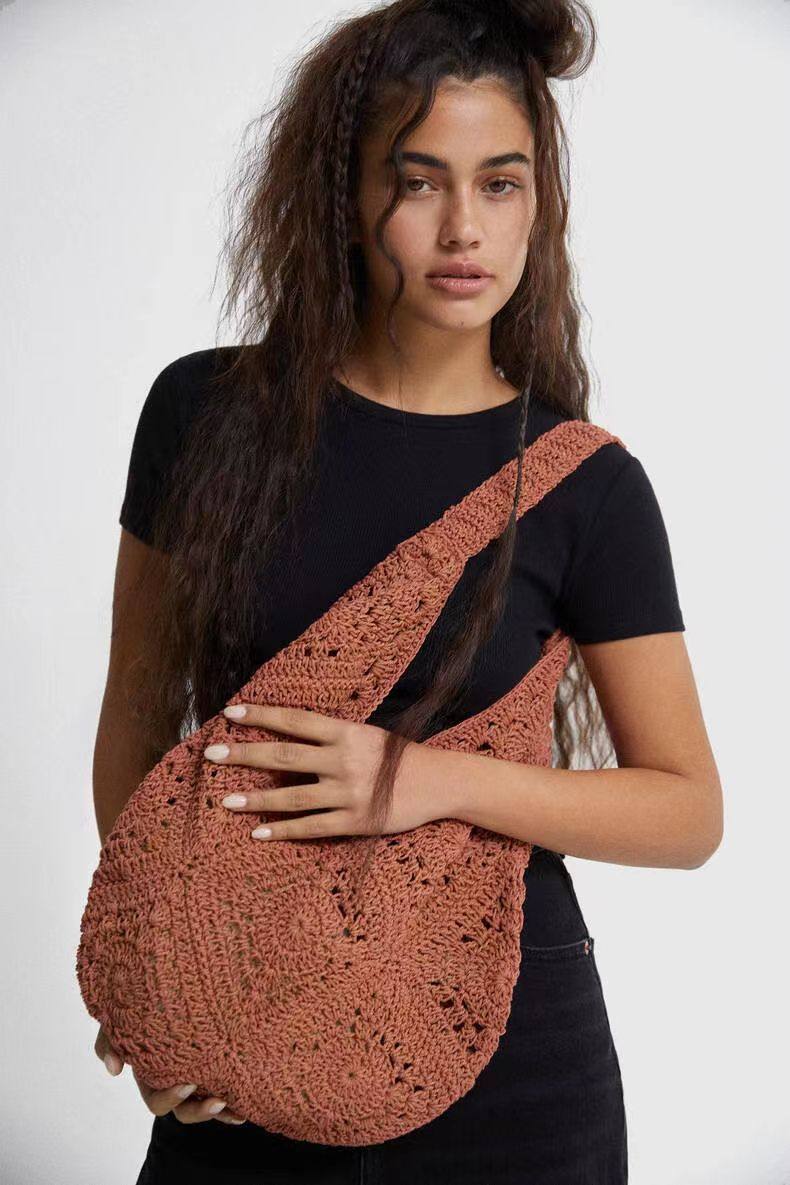 Плетеная вместительная и большая летняя модная трикотажная сумка на одно плечо