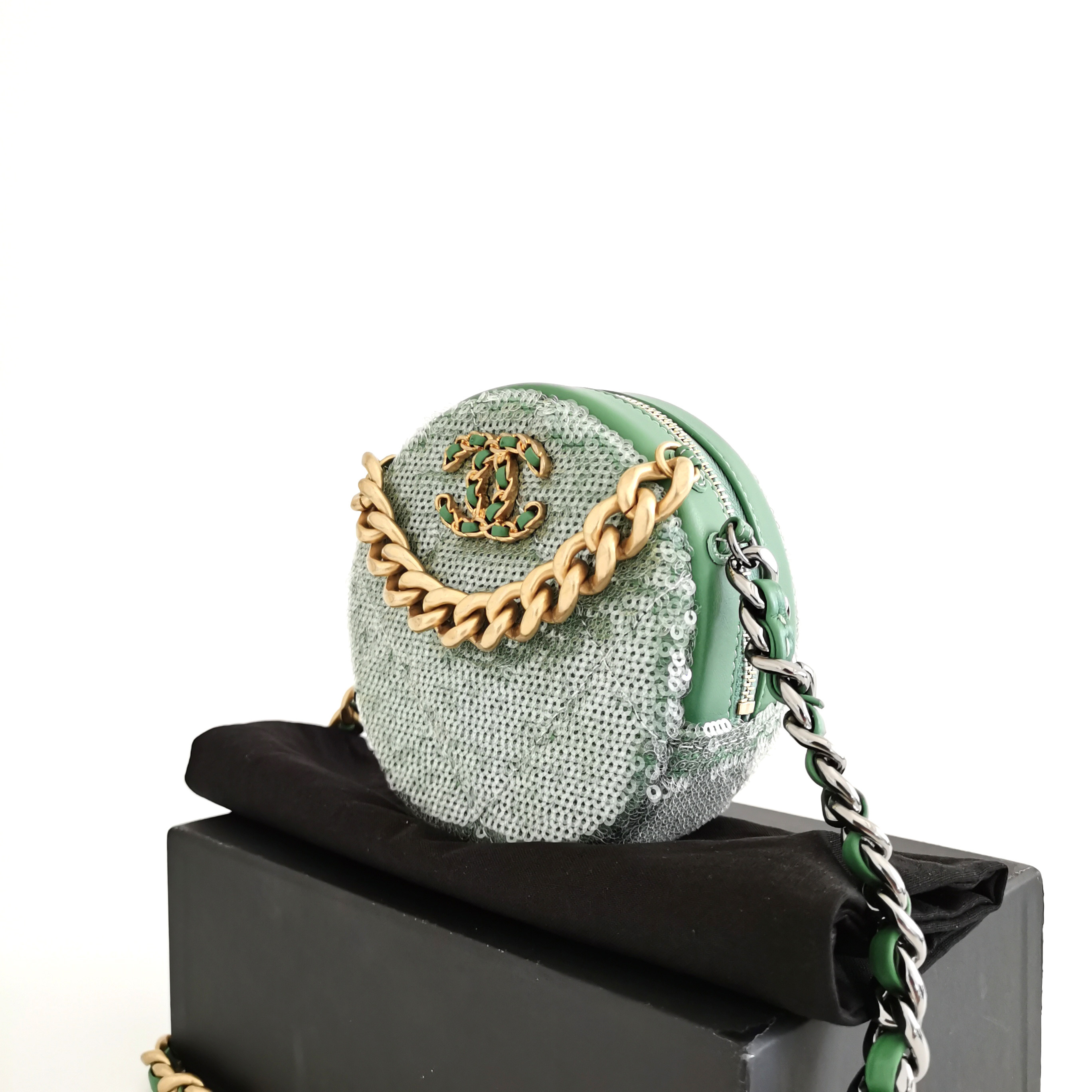[98 Новый неиспользованный] Chanel Chanel Limited Model 19 Beeding Sequits Mini Cloge Cake Plough Chain Bag