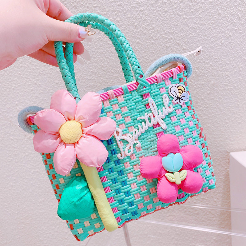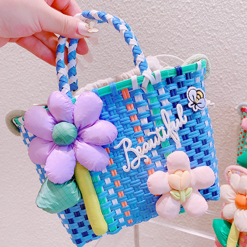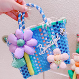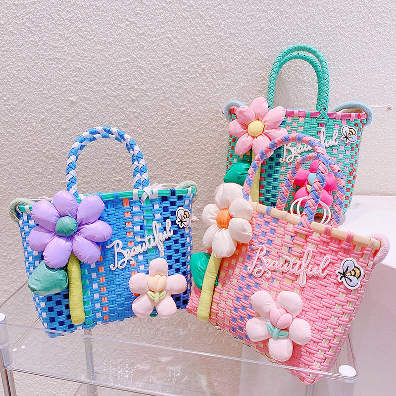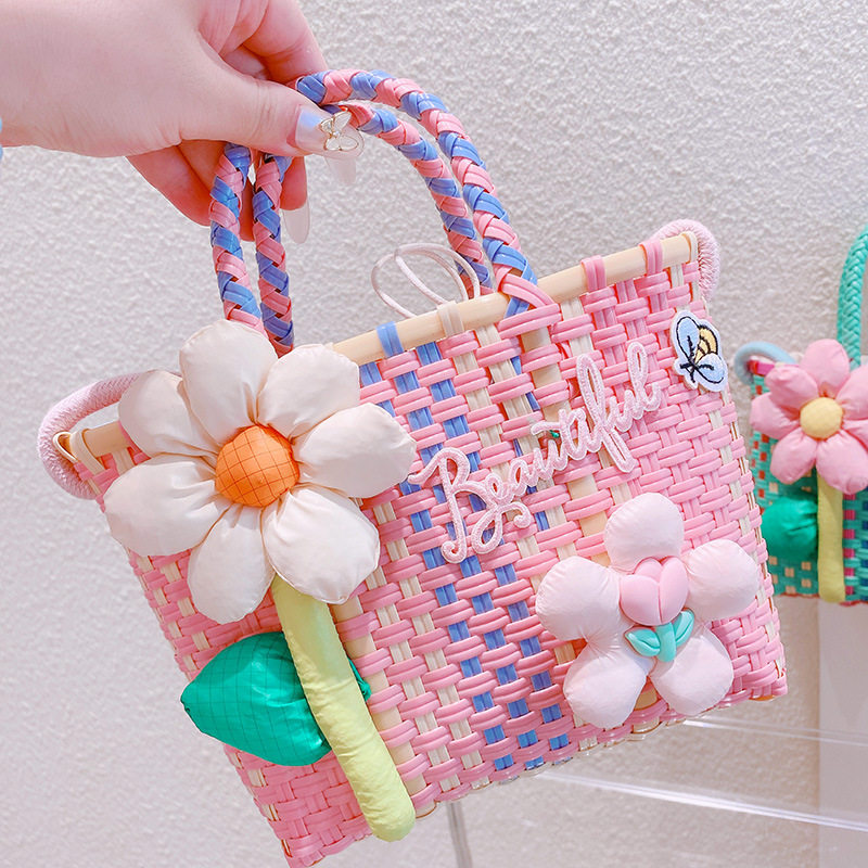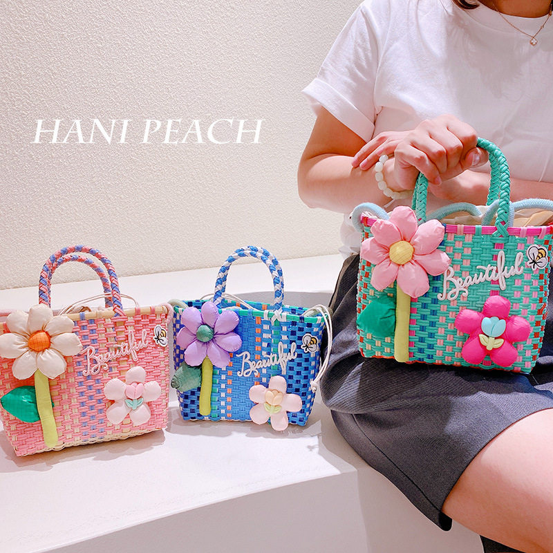 Летняя плетеная корзина, сумка, в корейском стиле, в цветочек, с вышивкой