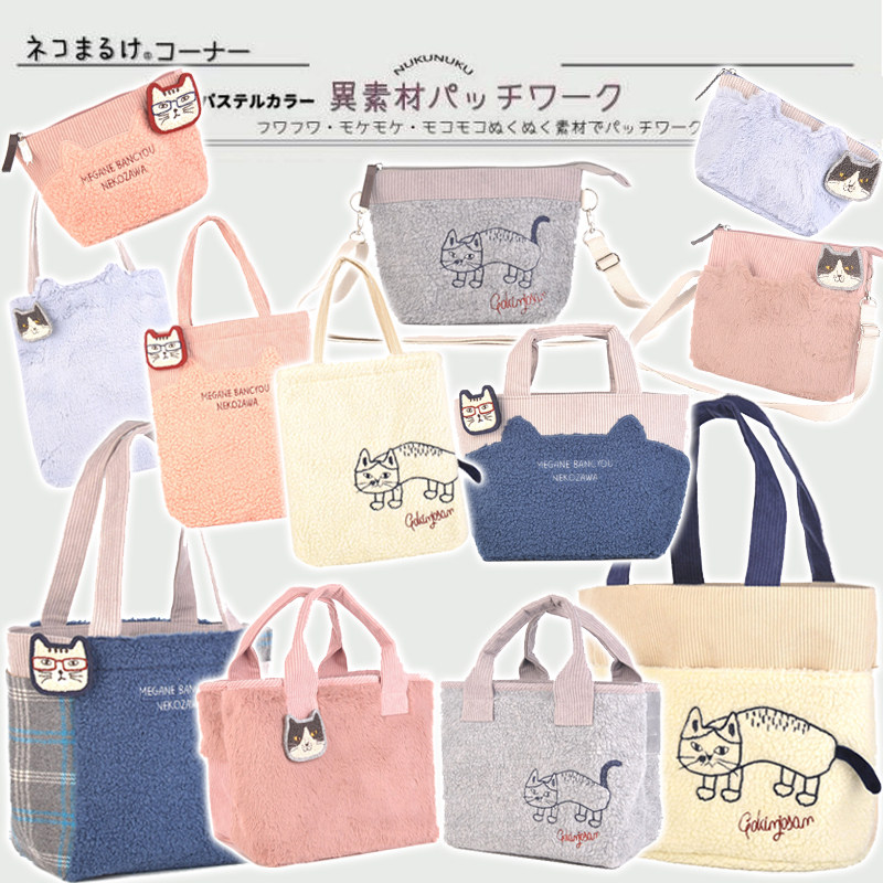 Много -материальный контрастный цветовой плюш плюшевой экспорт японский подлинный кошачий пакет сумки мессенджера бархат бархат