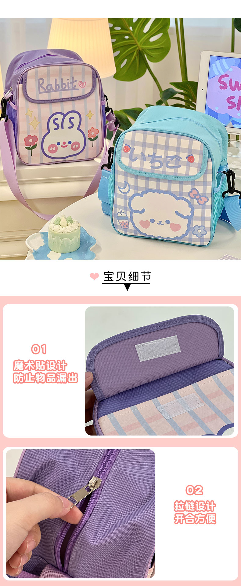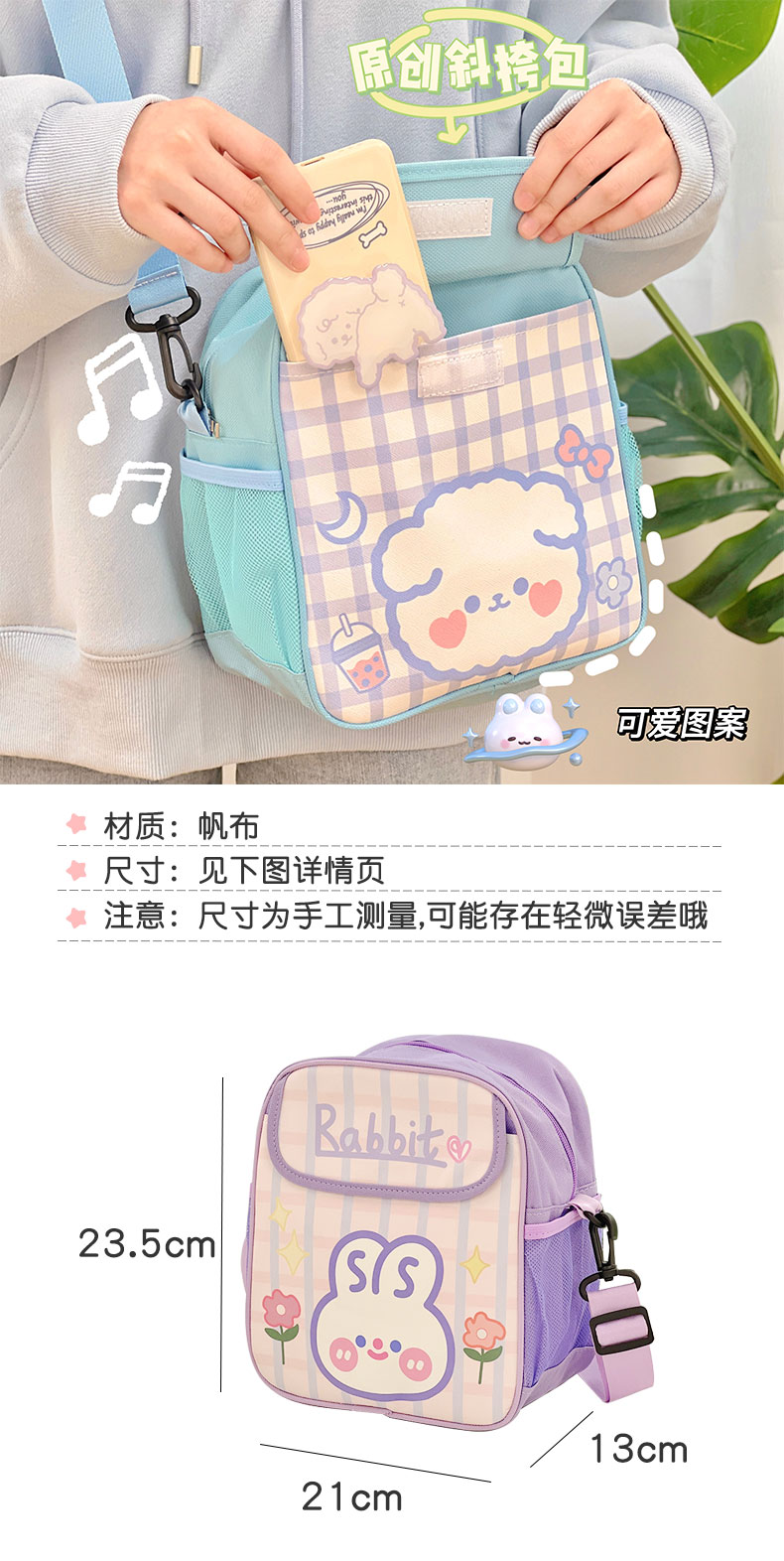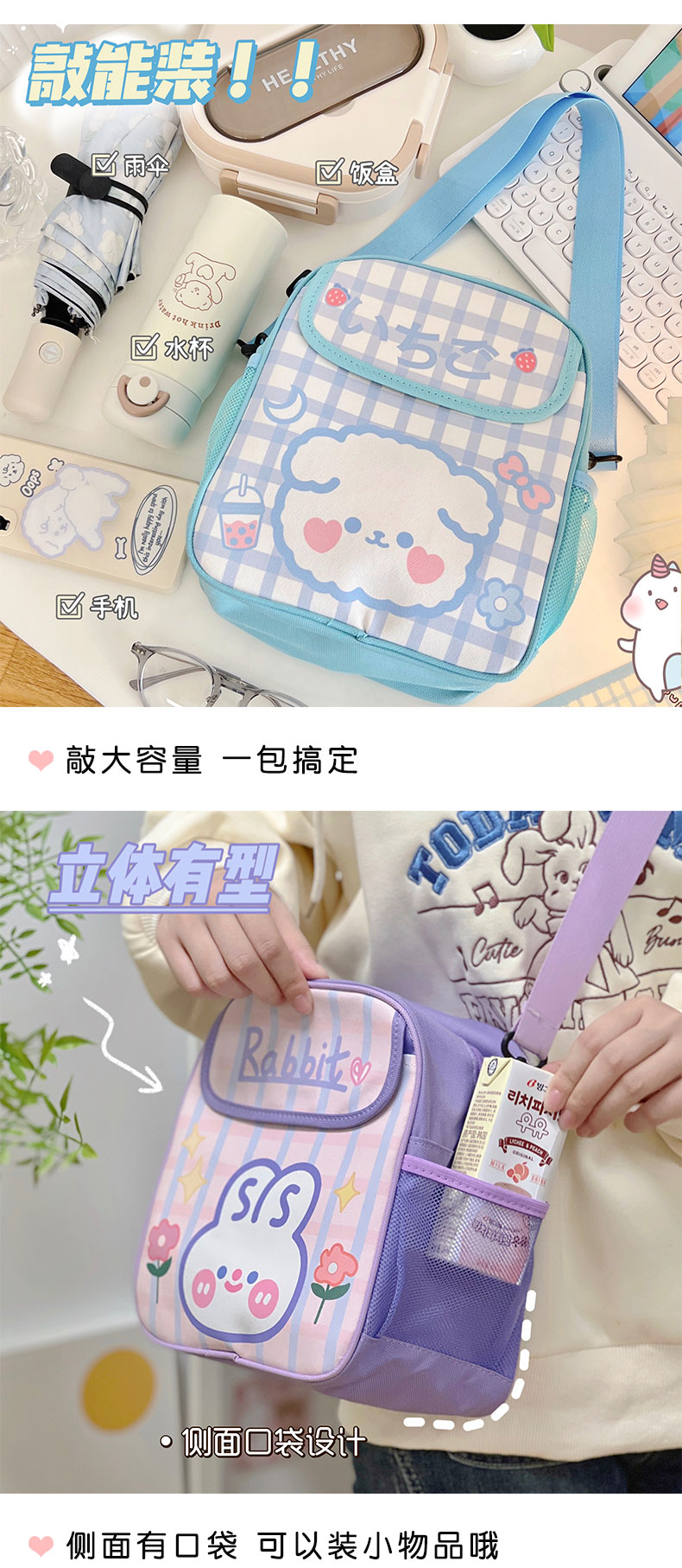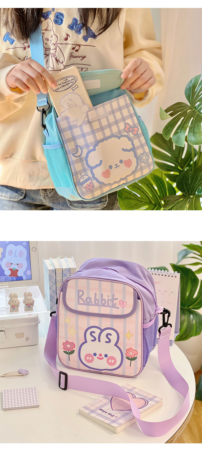 Сумка через плечо, детский шоппер, детская сумка для школьников, милая небольшая сумка, сумка для путешествий, кролик, рюкзак