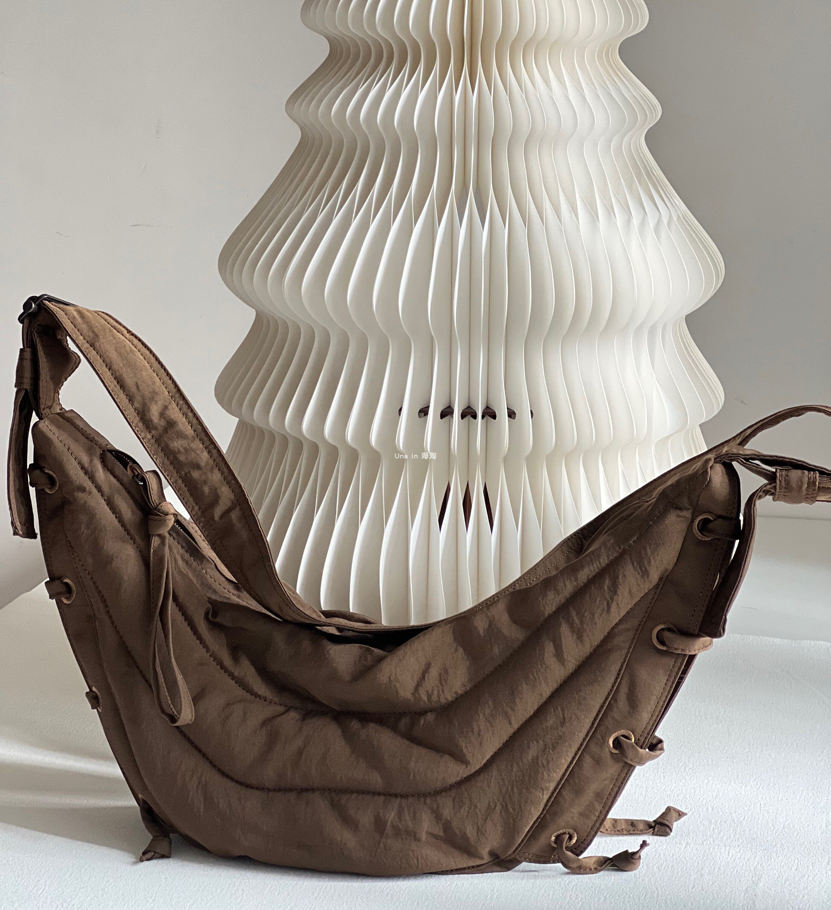 -Форма вдохновлена классическими мешками с лапшой Лемьера, заполняя линии человеческой техники, которые следуют за сумкой.
