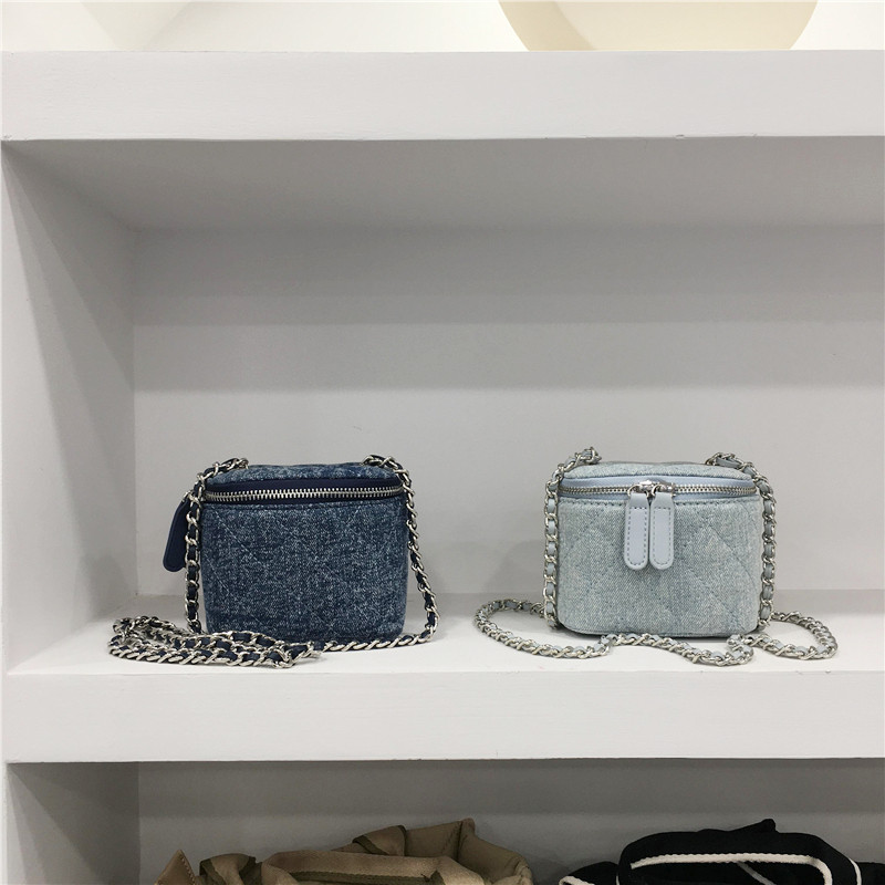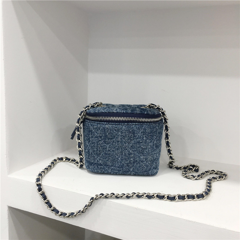 Милая джинсовая цепь с ромбовидным узором, маленькая сумка через плечо, коробка, 2023 уп., в стиле Шанель