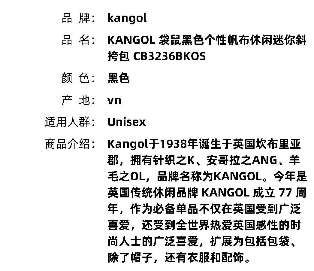 [Корея прямая почтовая почта] Кангол Кенгуру черный личный холст. Случайный маленький кросс -кузов CB3236BKOS