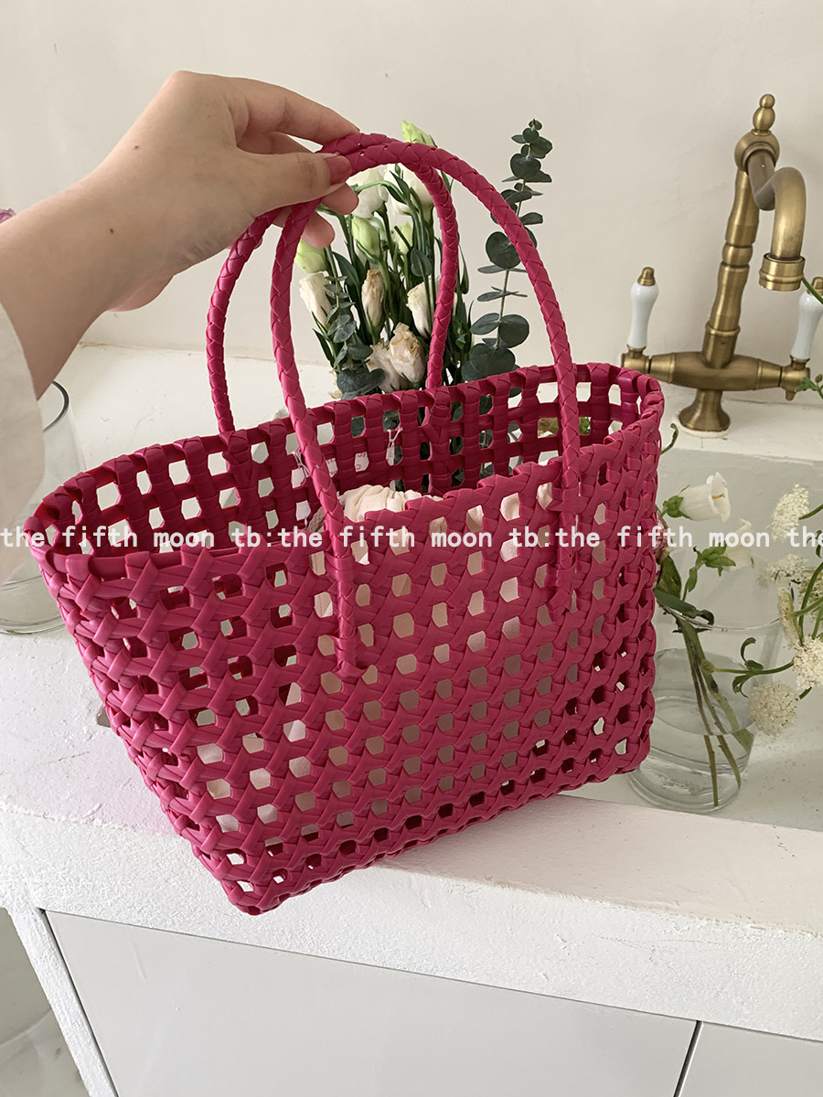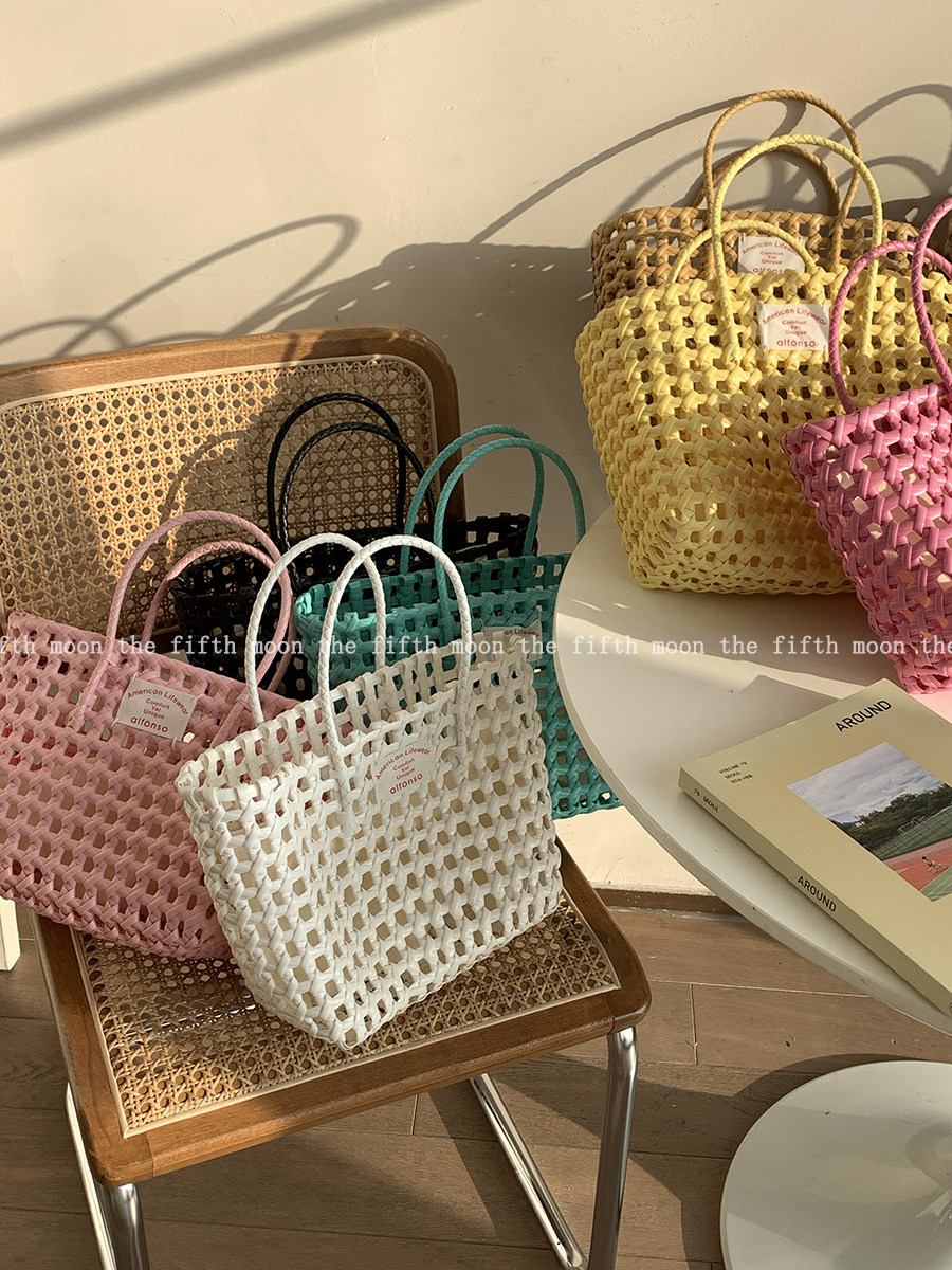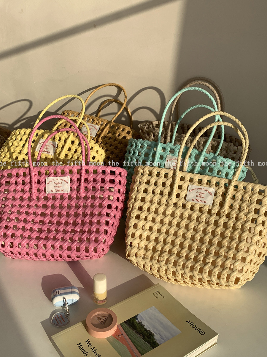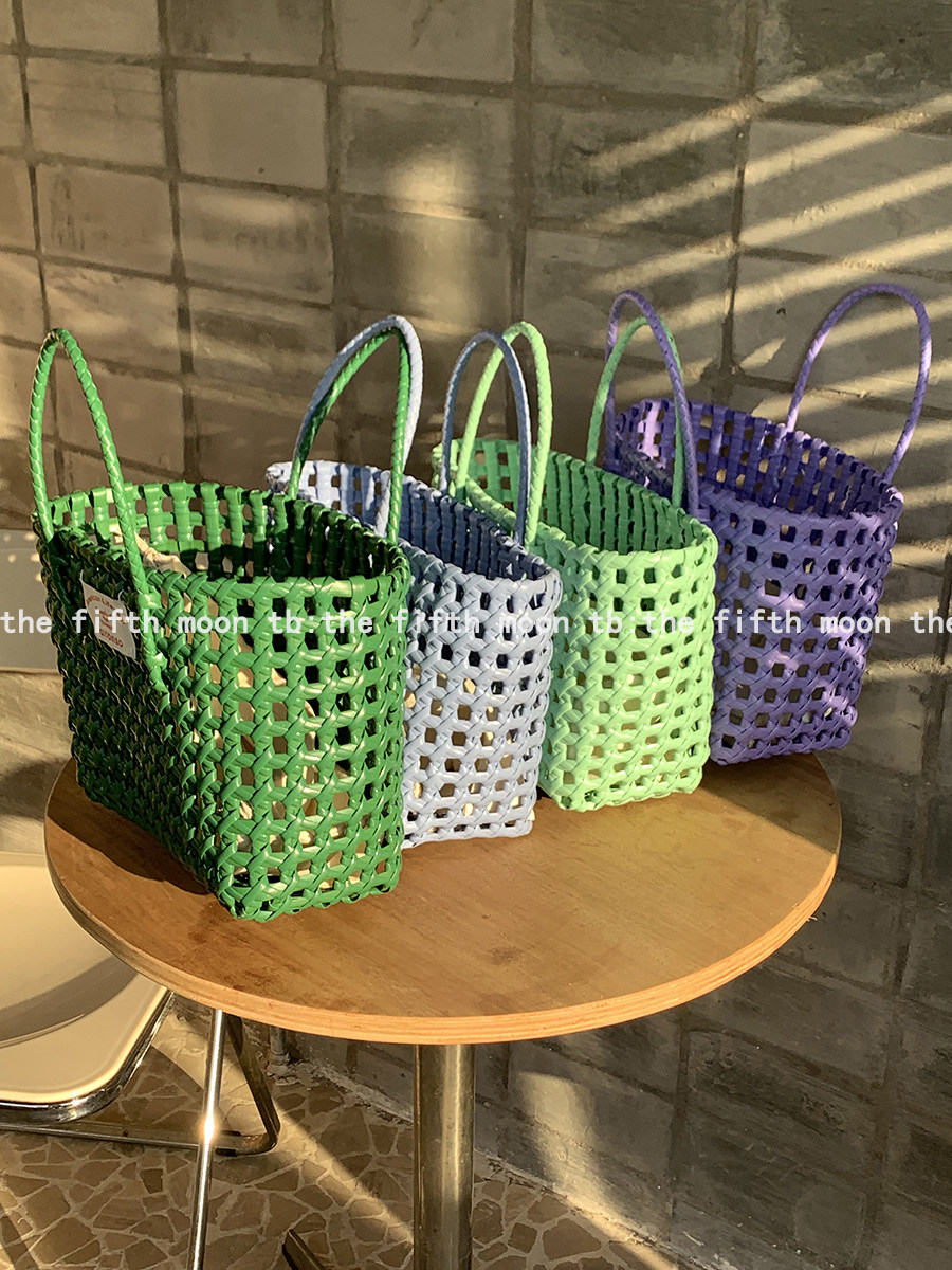 Thefifthmoon весна и лето полый цвет макарон тканая портативная корзина для овощей в праздничном стиле повседневная пляжная ручная переноска