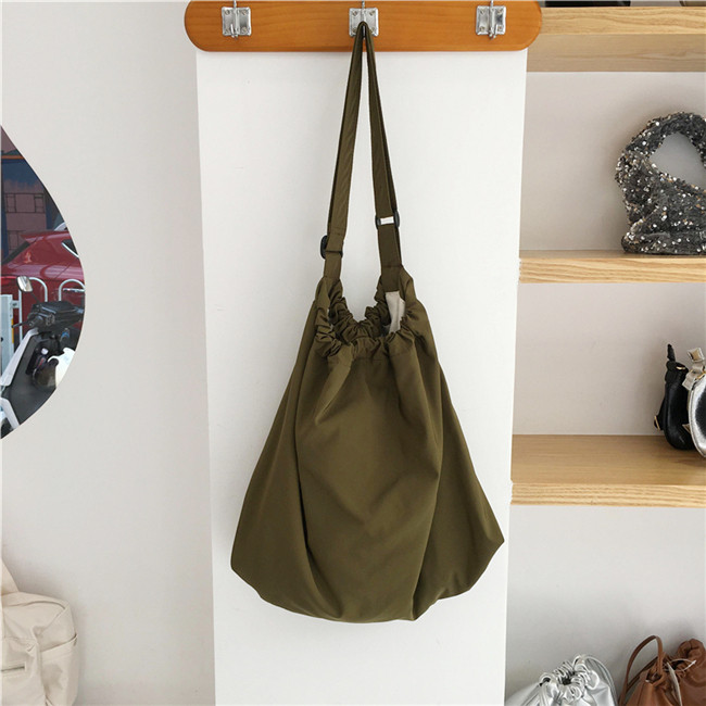Вместительная и большая нейлоновая сумка на одно плечо для отдыха, коллекция 2023, в корейском стиле, Южная Корея, на шнурках