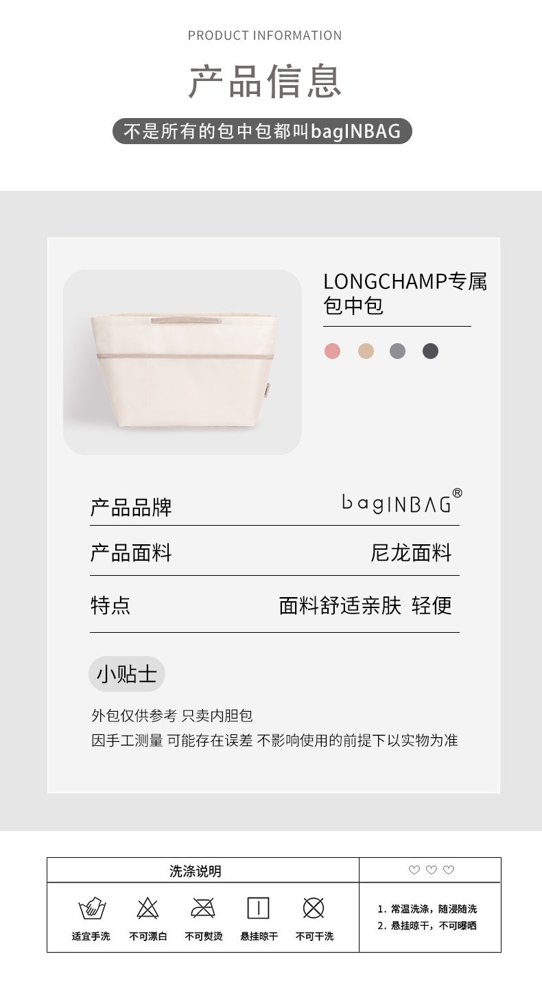 Применимо к хранению хранения хранения Lungchamp Lungchamp и сортировки изысканной мешки с пельмени во внутренней сумке.
