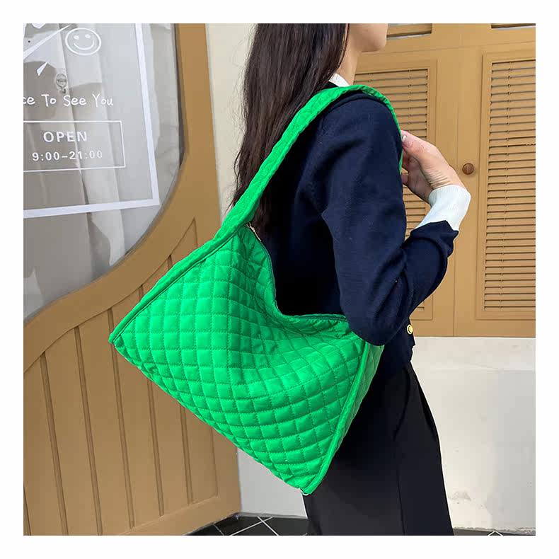 Модная трендовая вместительная и большая демисезонная сумка подмышку с ромбовидным узором для отдыха на одно плечо