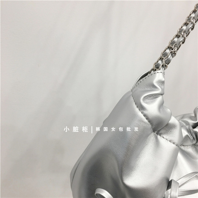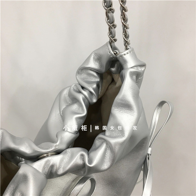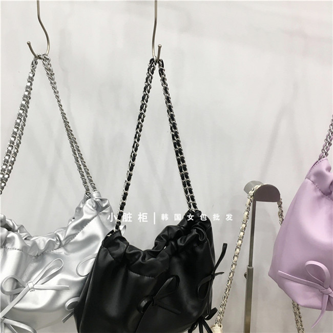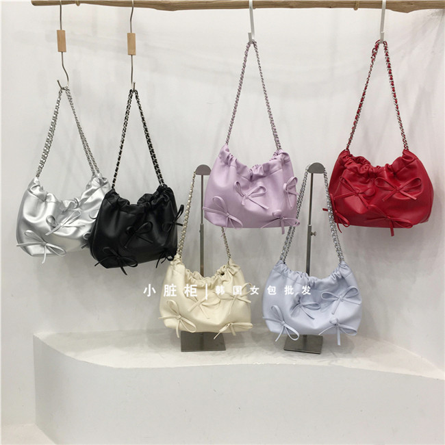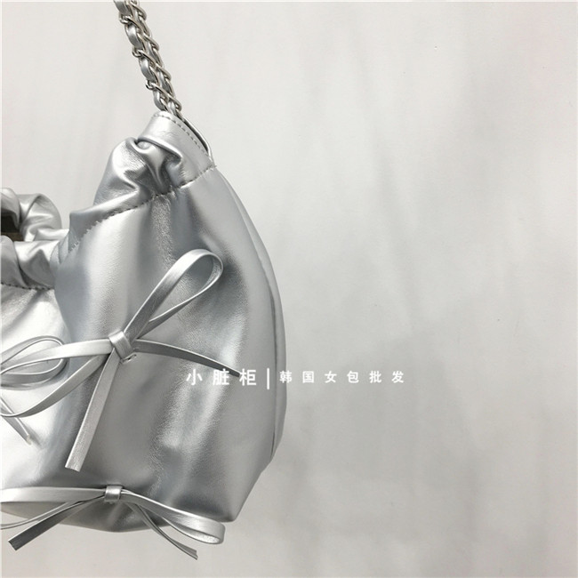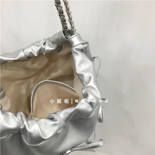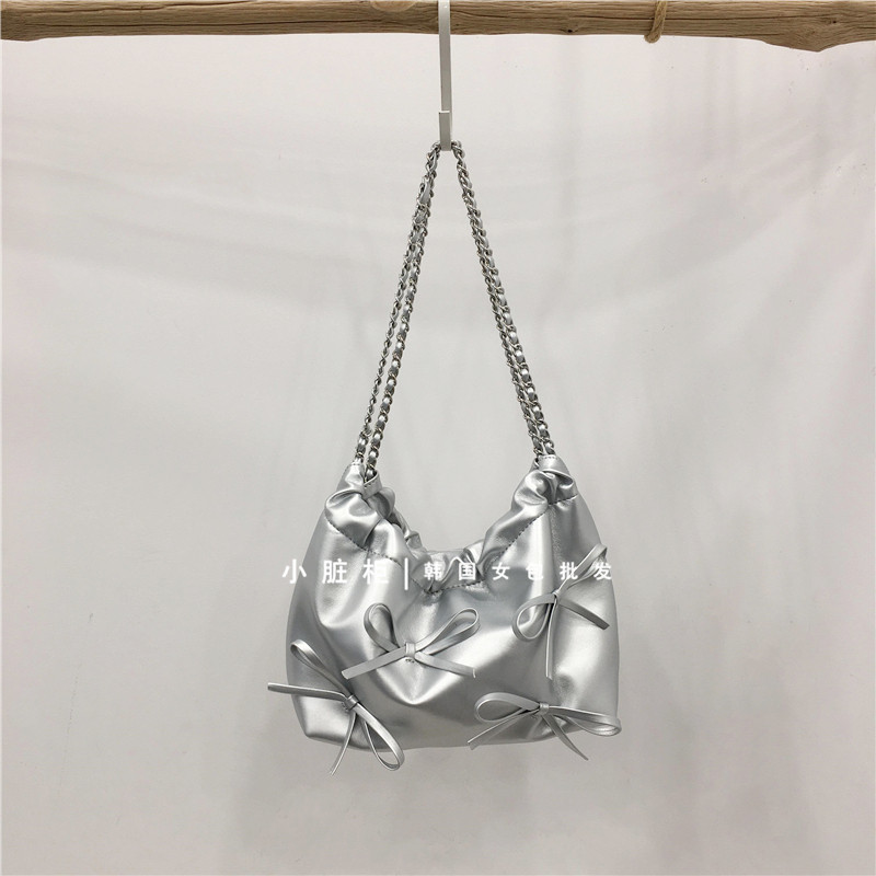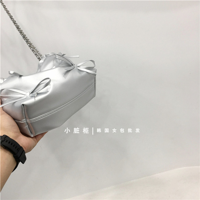 Небольшой модный мусорный мешок, цепь с бантиком, серебряная сумка на одно плечо