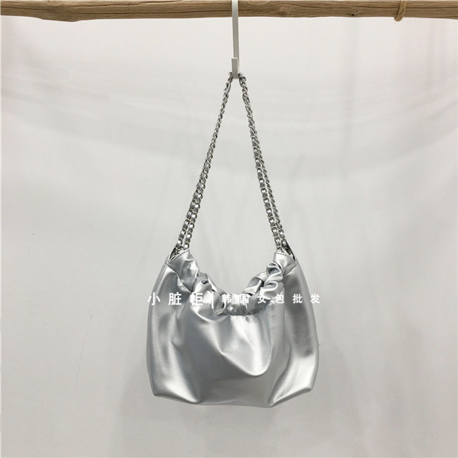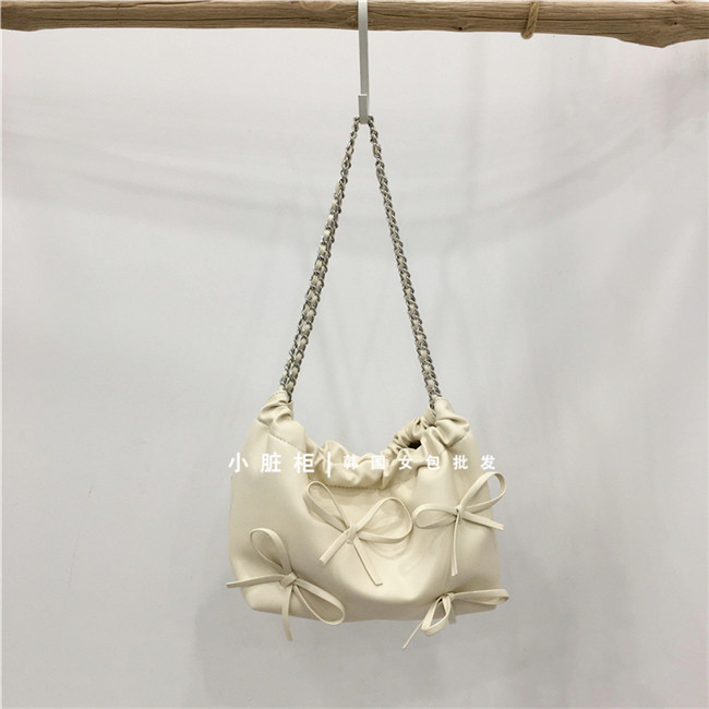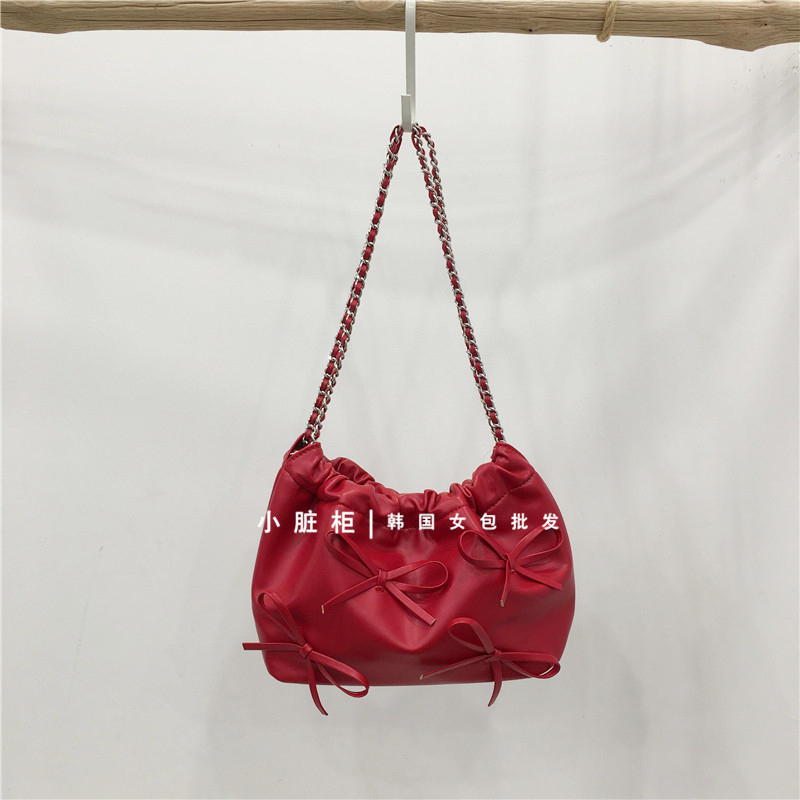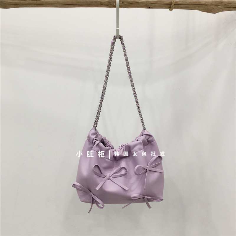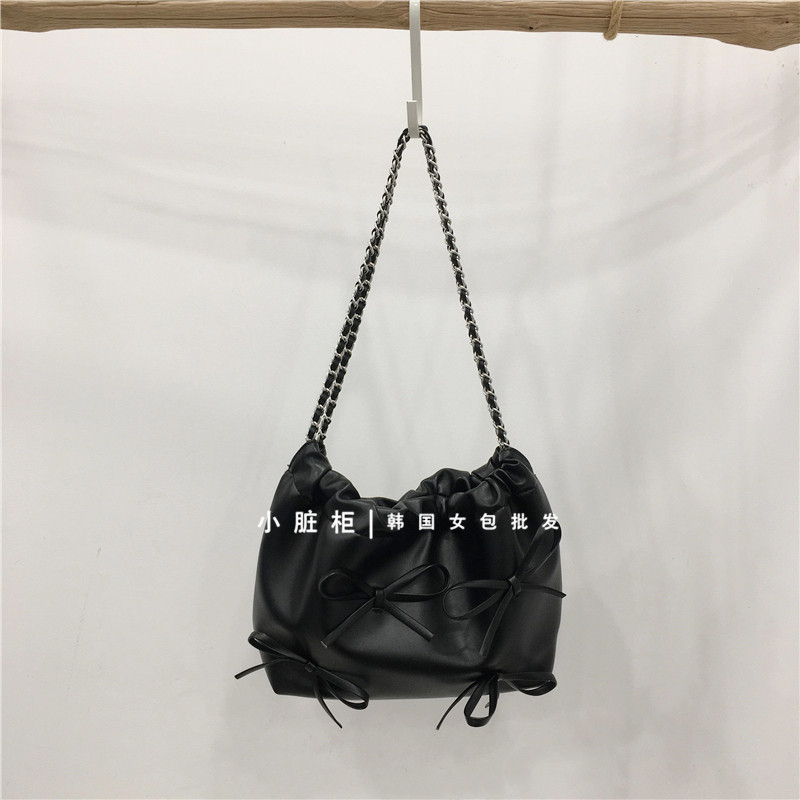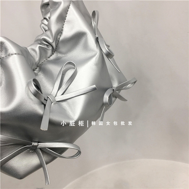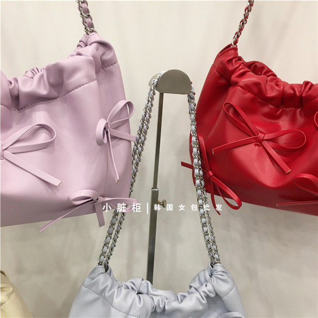 Небольшой модный мусорный мешок, цепь с бантиком, серебряная сумка на одно плечо