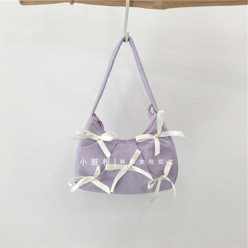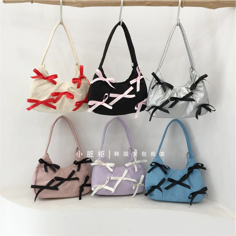 Небольшая дизайнерская серебряная портативная сумка на одно плечо с бантиком, Южная Корея