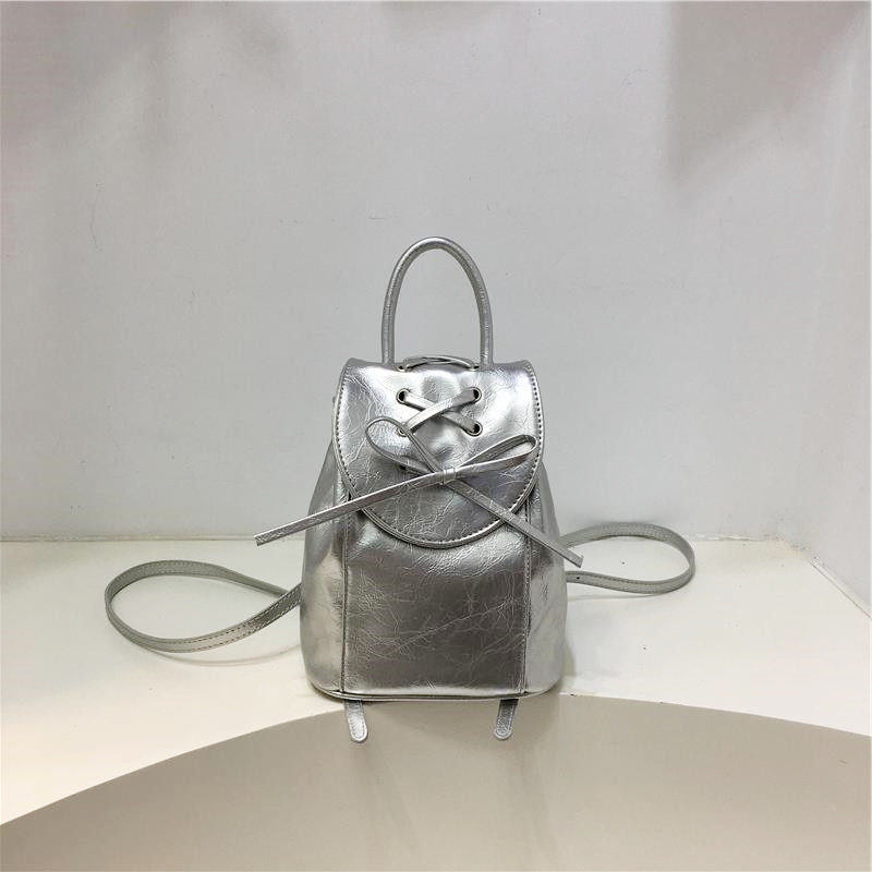 Серебряный портативный рюкзак с бантиком, универсальная сумка