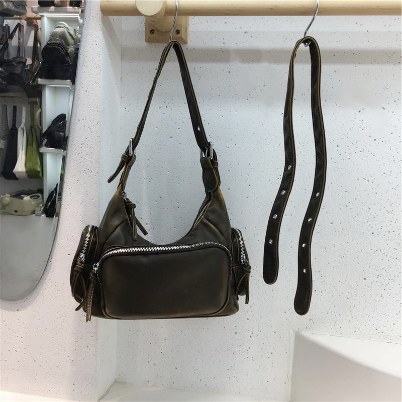 Трендовая универсальная сумка через плечо для отдыха, ретро портативная сумка подмышку, из натуральной кожи