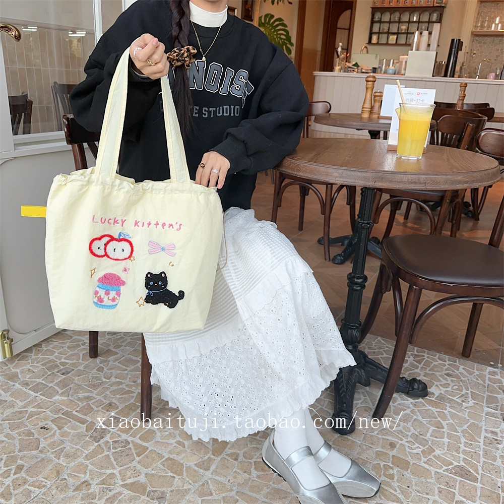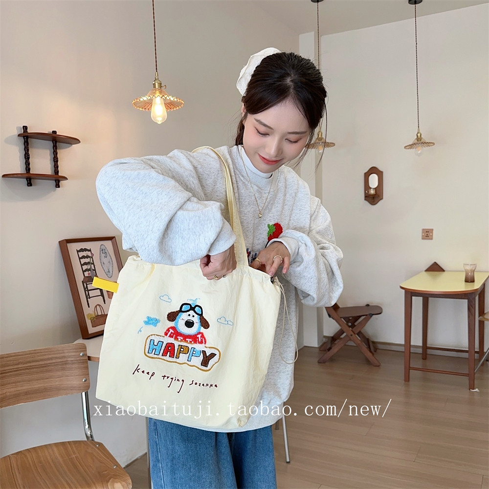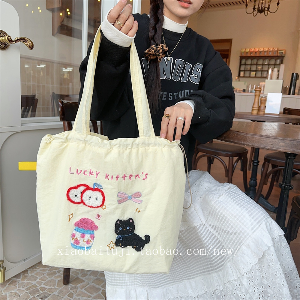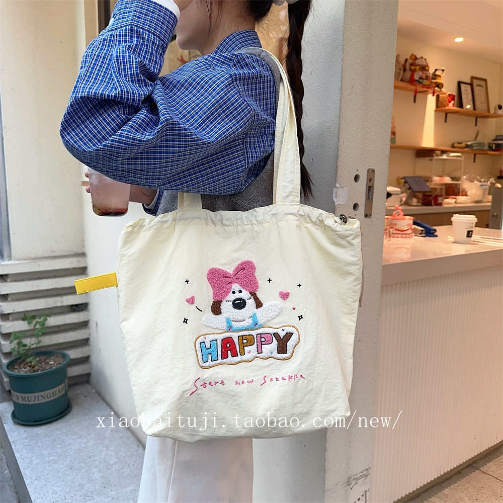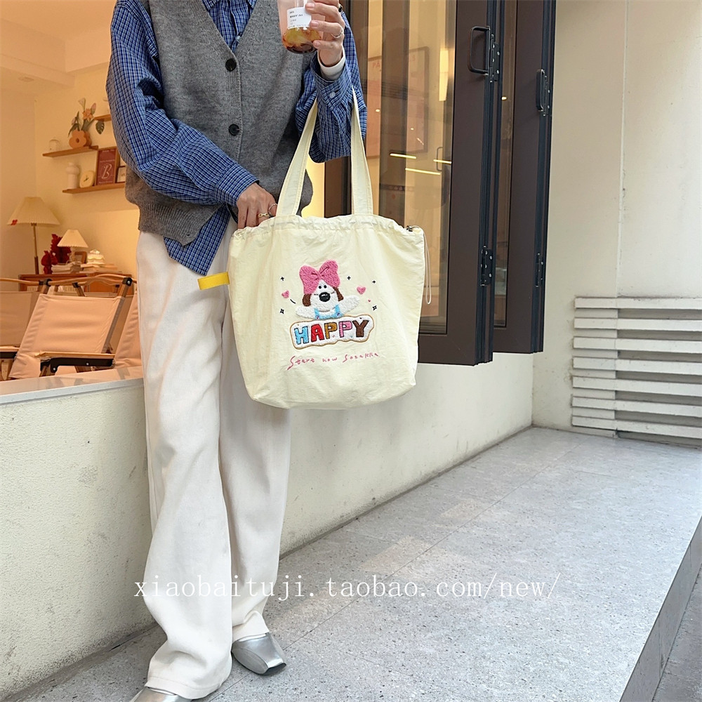 Брендовая милая вместительная и большая универсальная портативная сумка на одно плечо для отдыха, с вышивкой, на шнурках