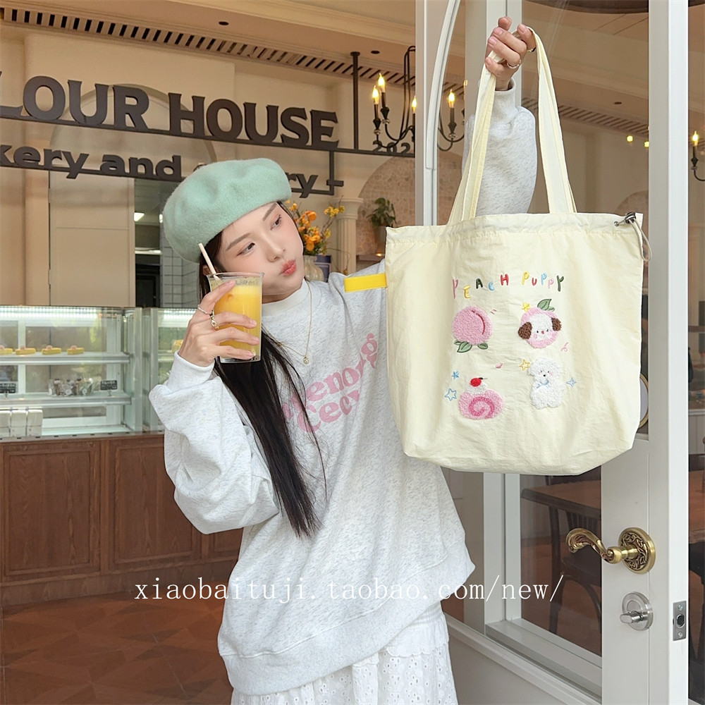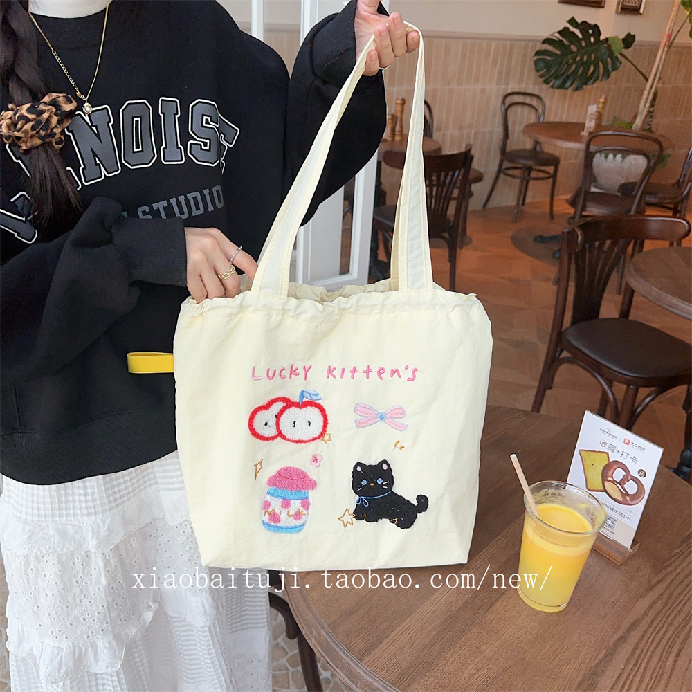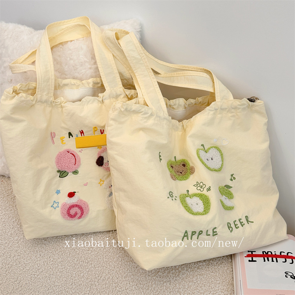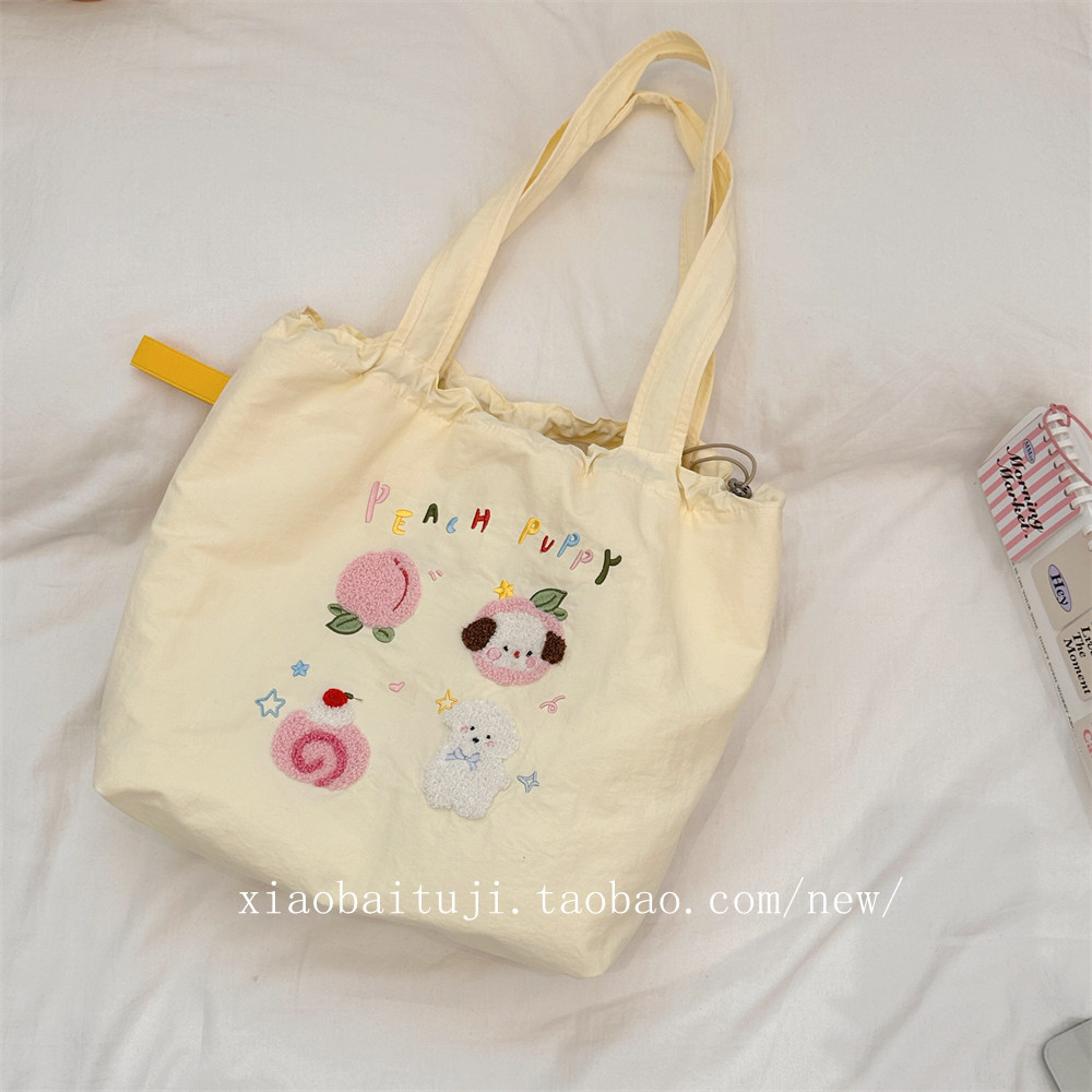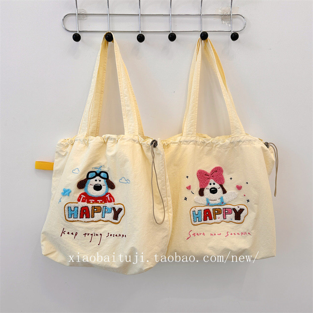 Брендовая милая вместительная и большая универсальная портативная сумка на одно плечо для отдыха, с вышивкой, на шнурках