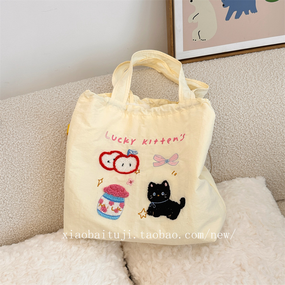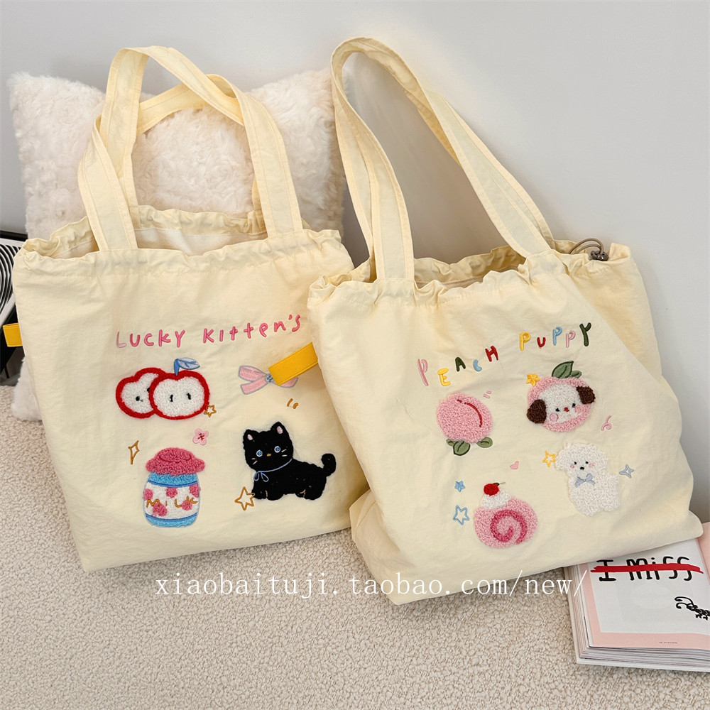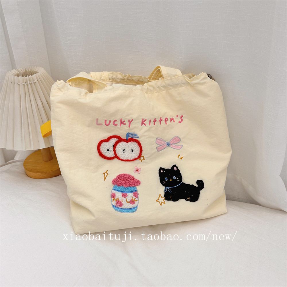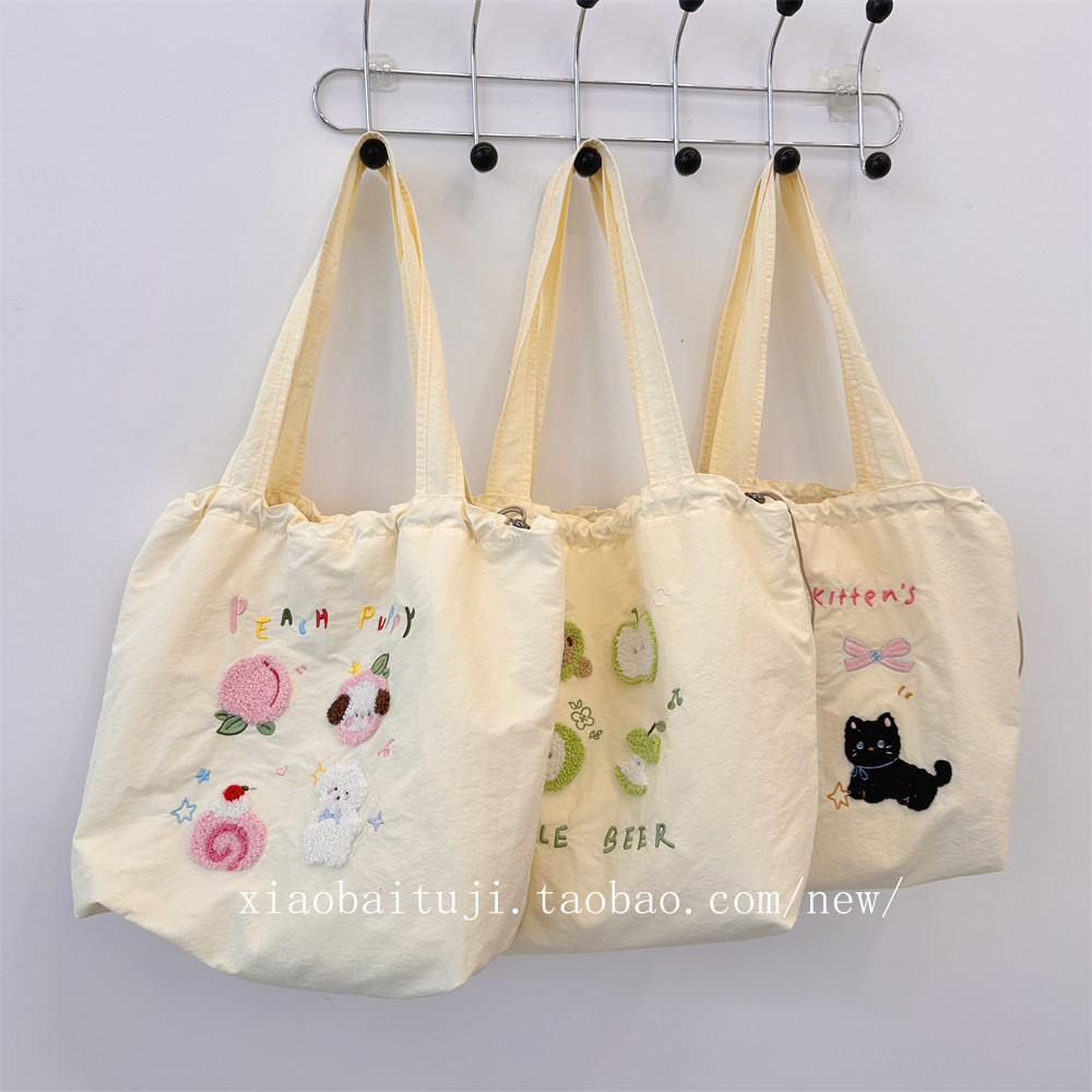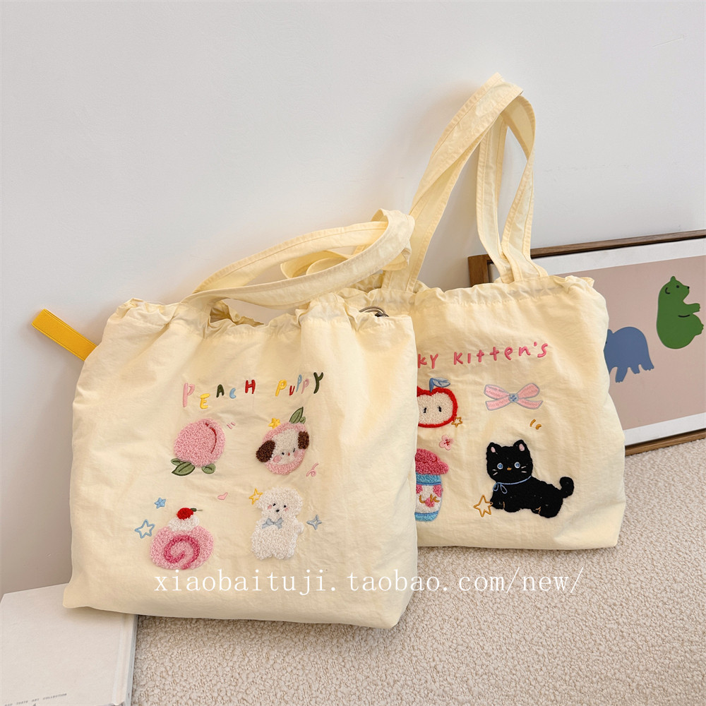 Брендовая милая вместительная и большая универсальная портативная сумка на одно плечо для отдыха, с вышивкой, на шнурках