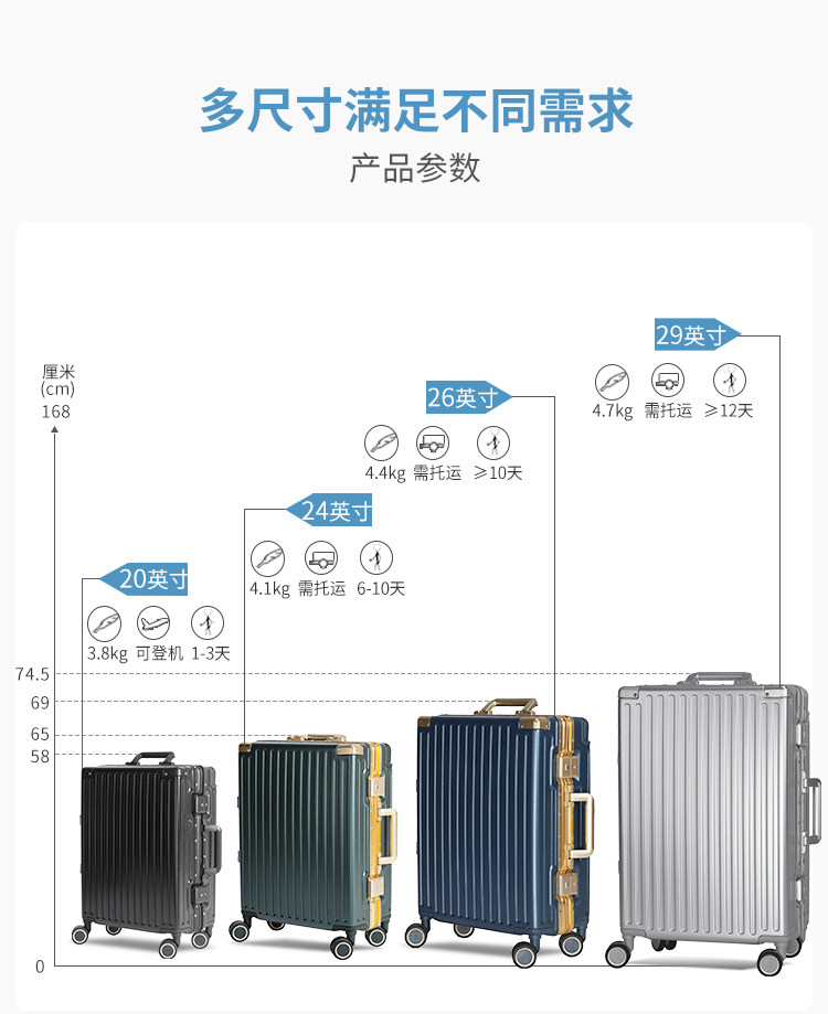 | Размер: | Чемодан, 20 дюймов, 24-дюймовый-золотой размер, 26-дюймовая средняя и дальние поездки, 29-дюймовый полет |