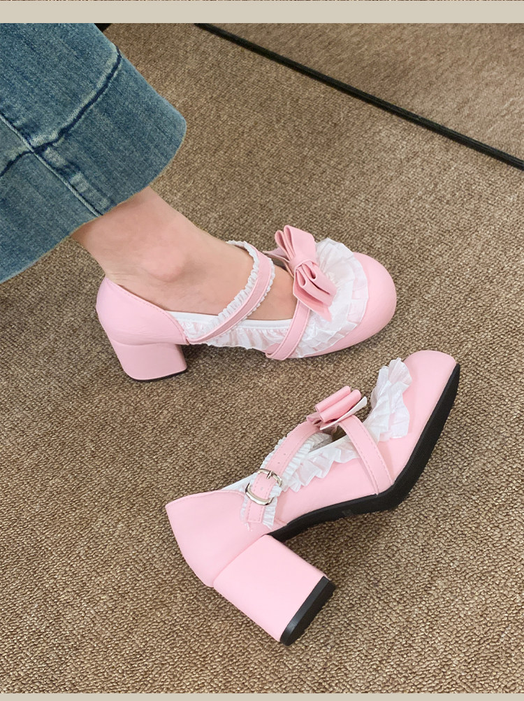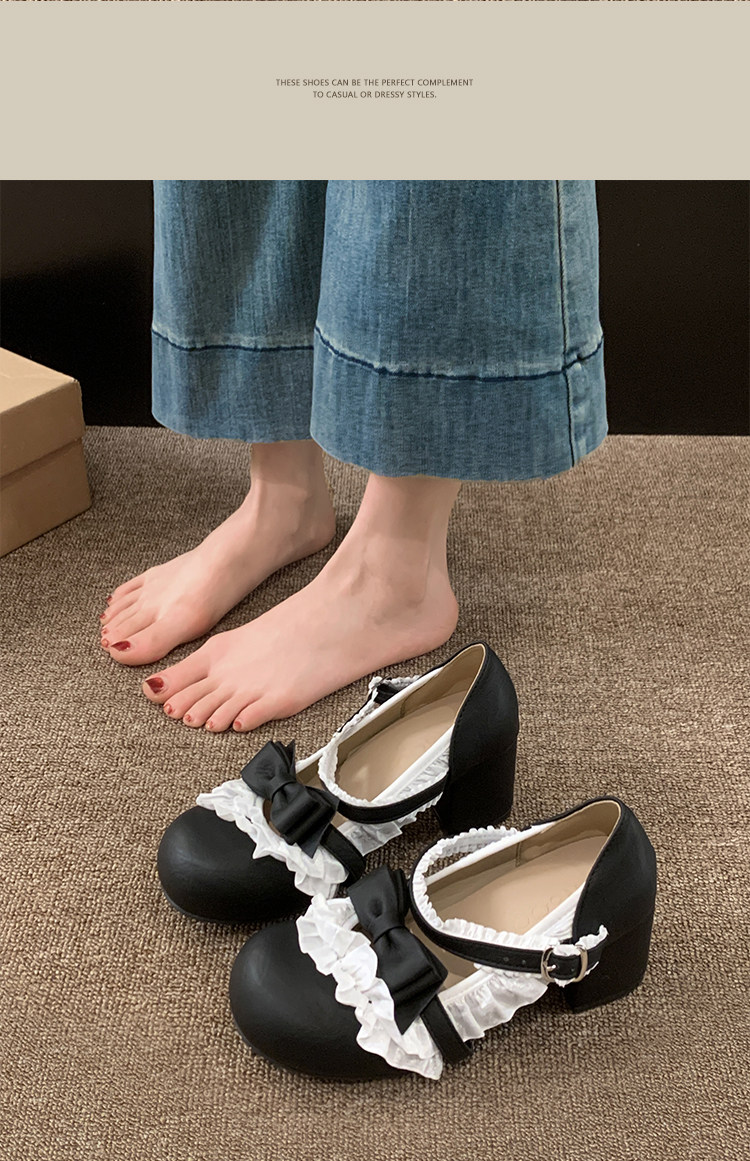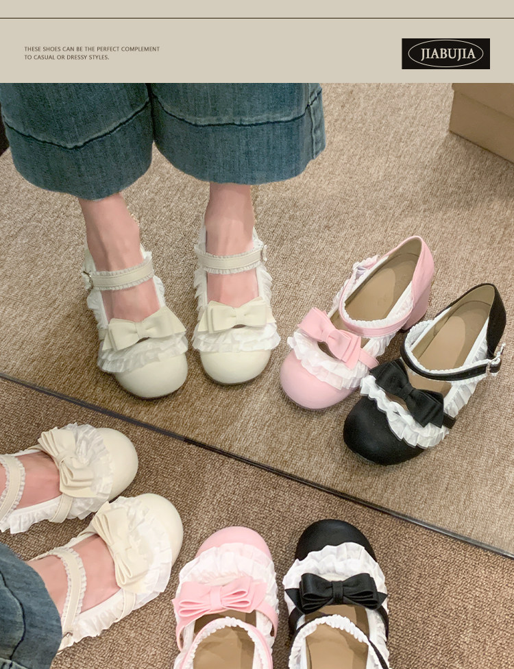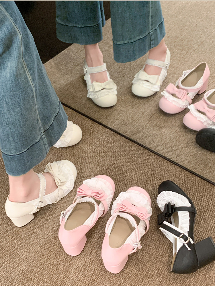 贾不假 Женская обувь Мэри Джейн, новинка 2026 года, весенняя обувь в стиле Лолиты на высоком каблуке, удобные туфли на одинарной платформе, маленькие кожаные туфли на толстом каблуке