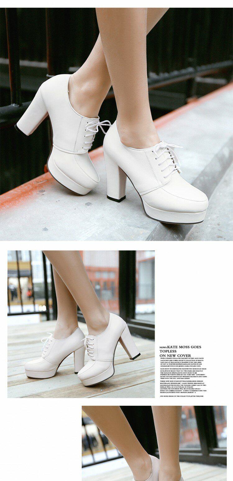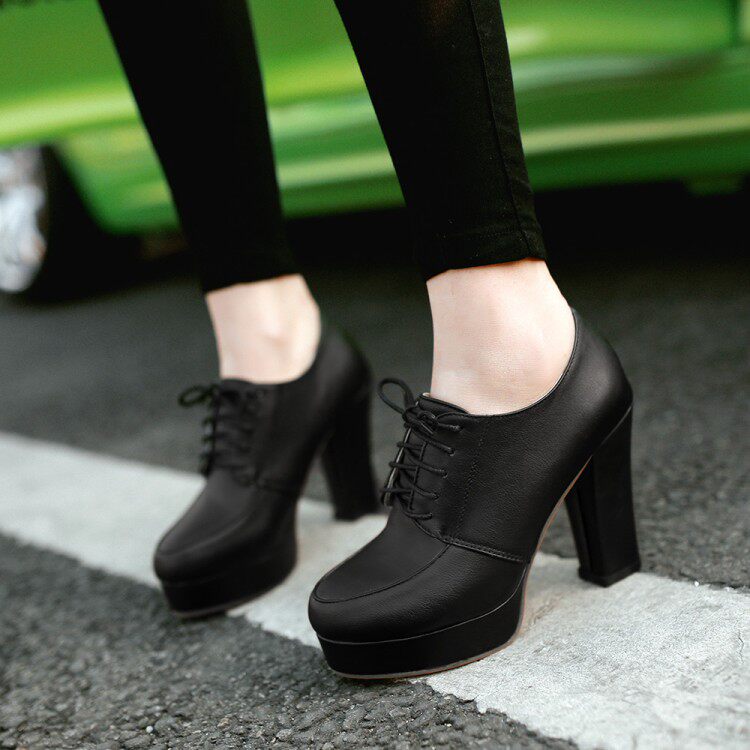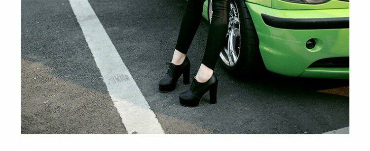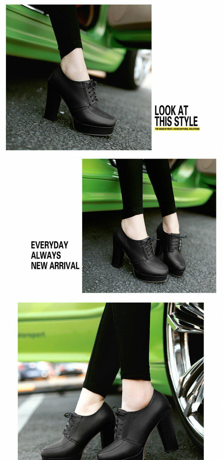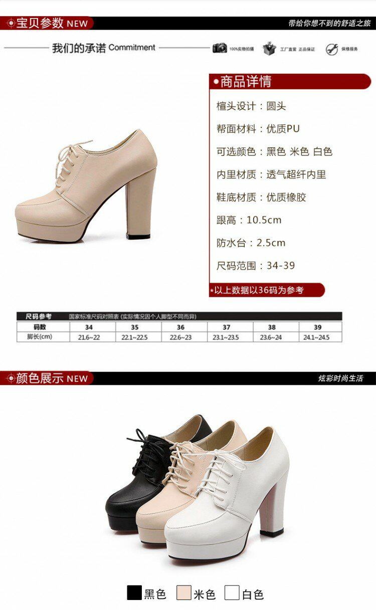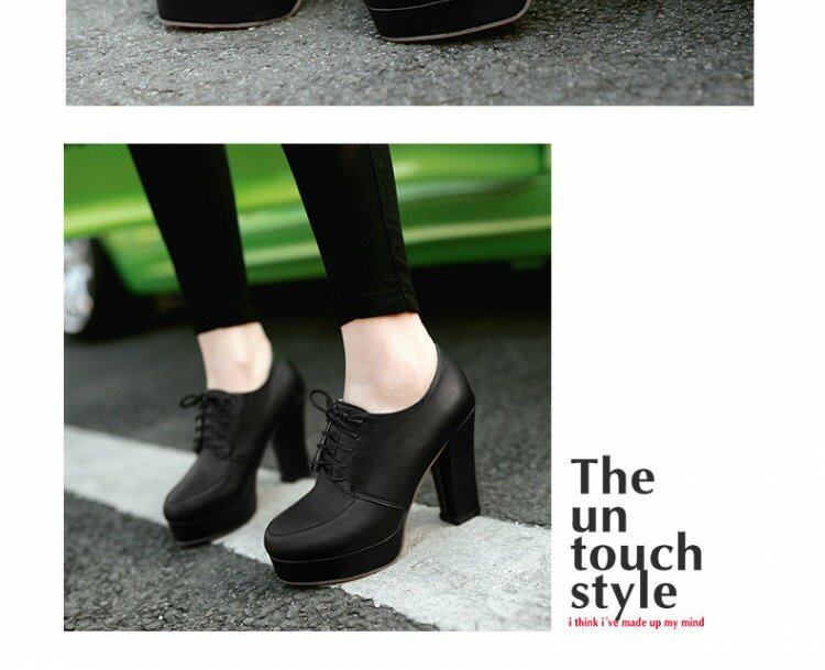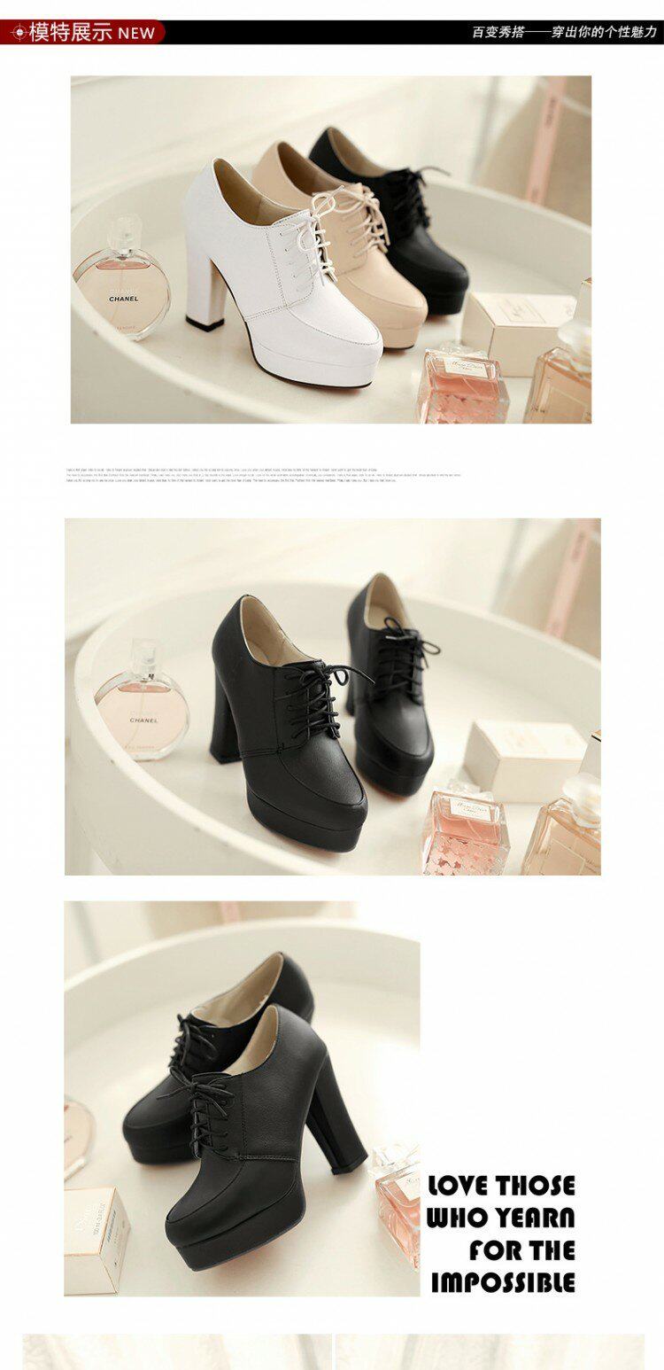 Весенние и осенние шнурки Высокие каблуки, высокие каблуки, одиночная обувь, водонепроницаемая платформа черная женская обувь большого размера 40-43 ярдов 41 42 ярда, 33 ярда