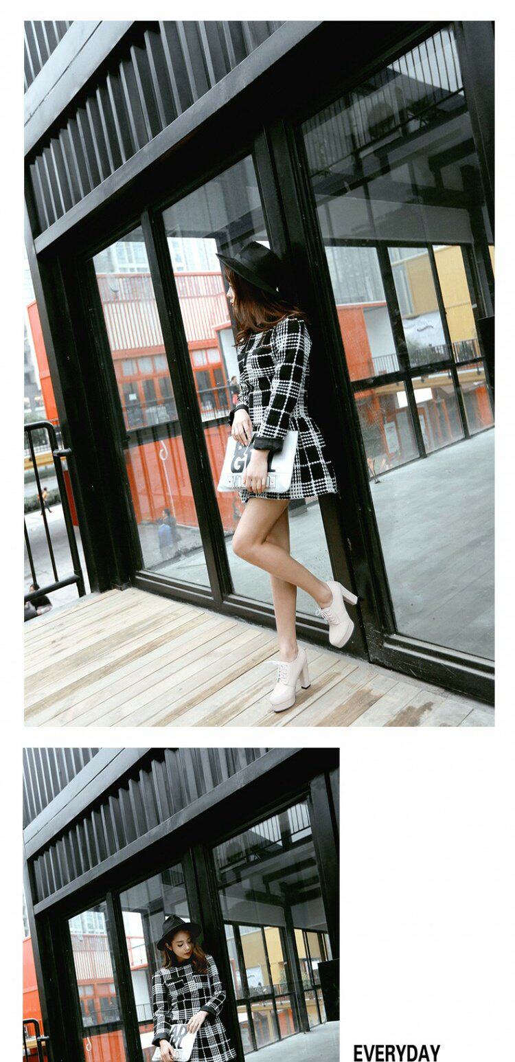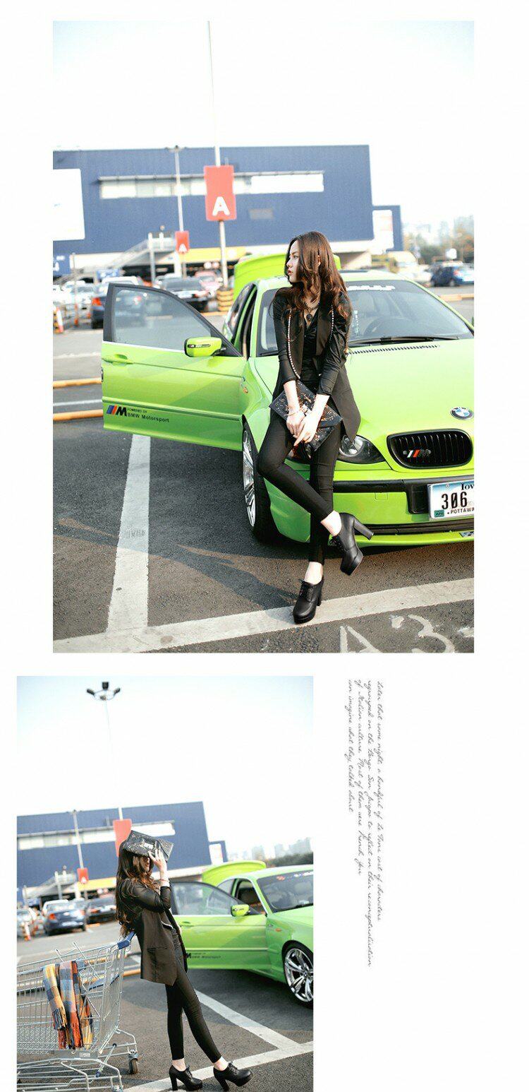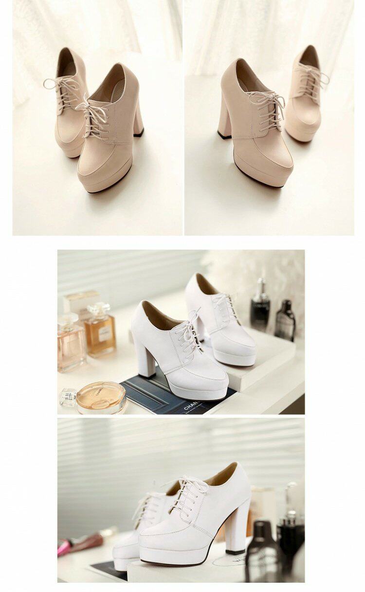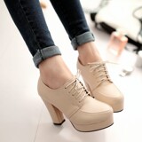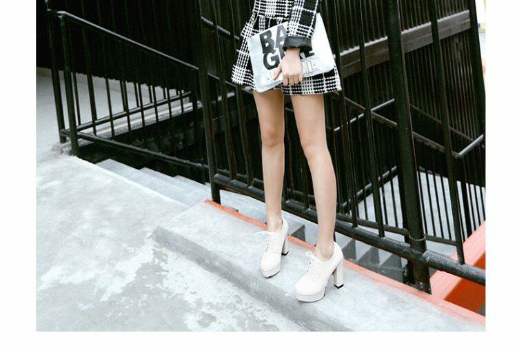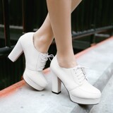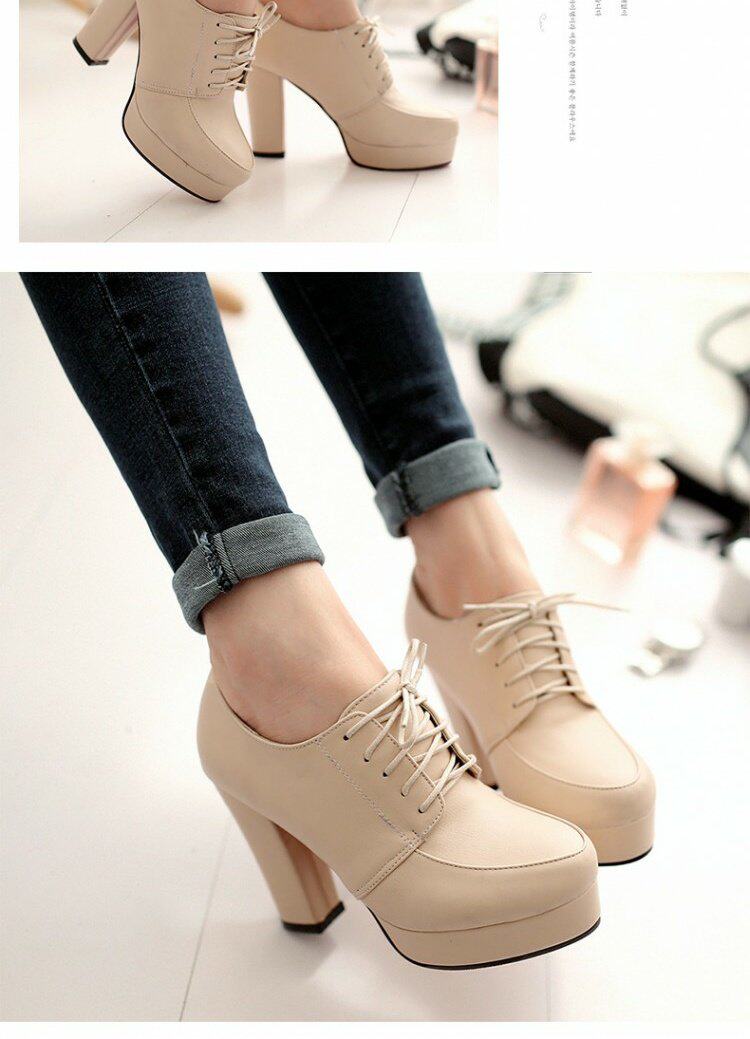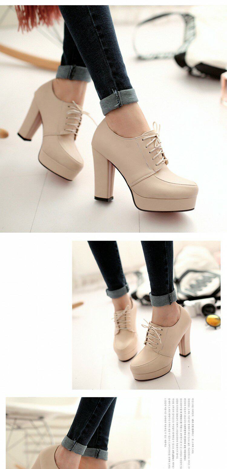 Весенние и осенние шнурки Высокие каблуки, высокие каблуки, одиночная обувь, водонепроницаемая платформа черная женская обувь большого размера 40-43 ярдов 41 42 ярда, 33 ярда