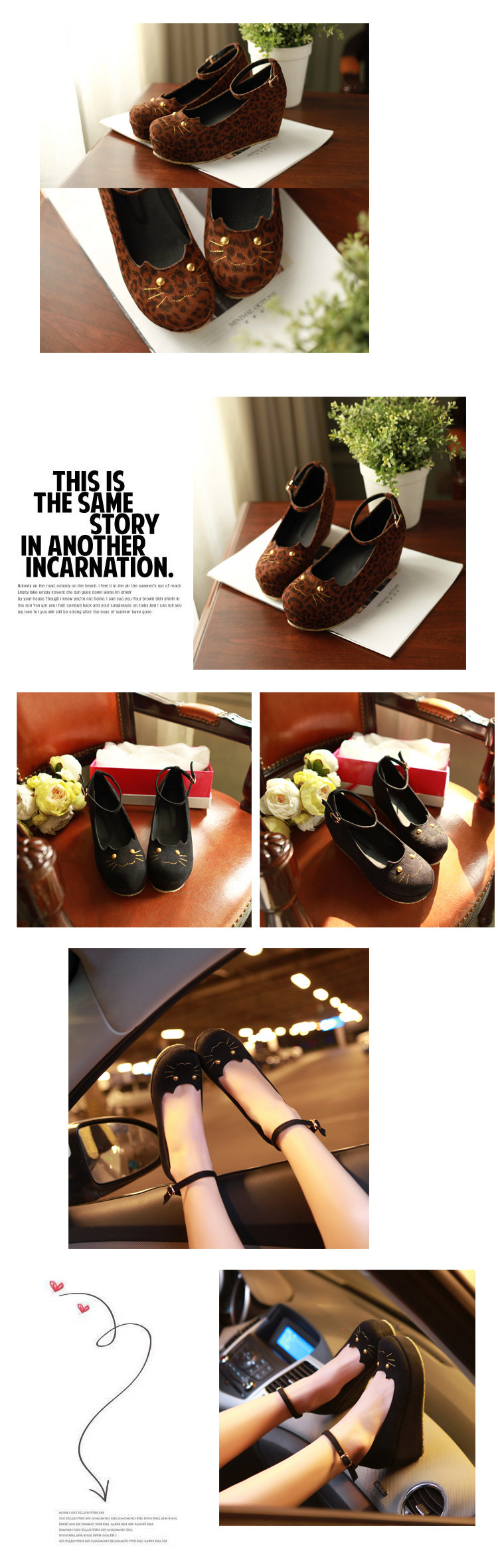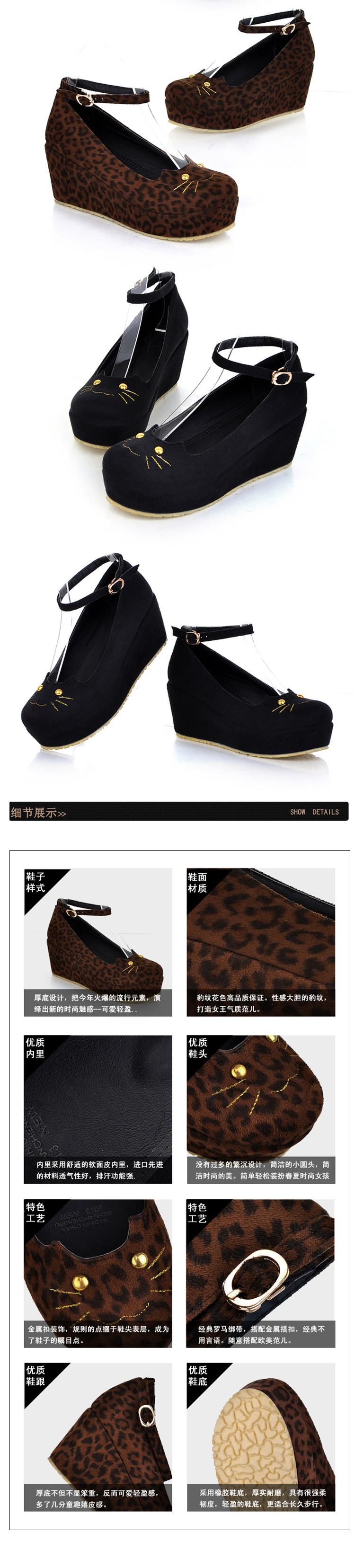 Корейская версия европейского и американского котенок головы леопардовые склоны склоны одиночные туфли, запястье густое дно свободные туфли для пирога, обувь для кошек