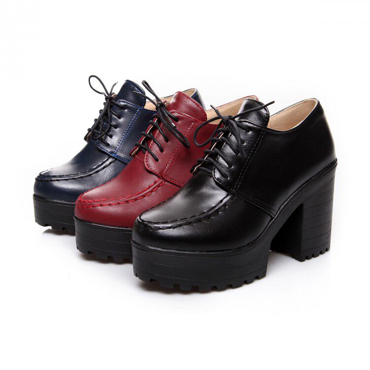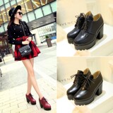 2015 Осень, новый стиль, туфли на толстом каблуке, женские туфли в корейском стиле, высокий каблук, толстая подошва, круглый носок, большой размер, глубокий рот, шнуровка, водонепроницаемая модная платформа