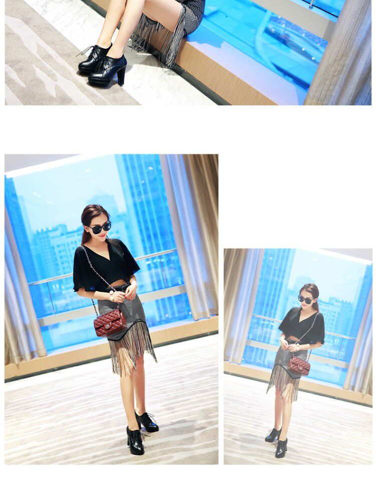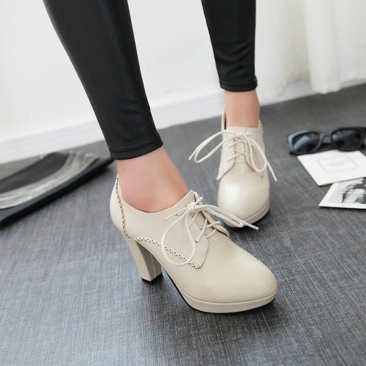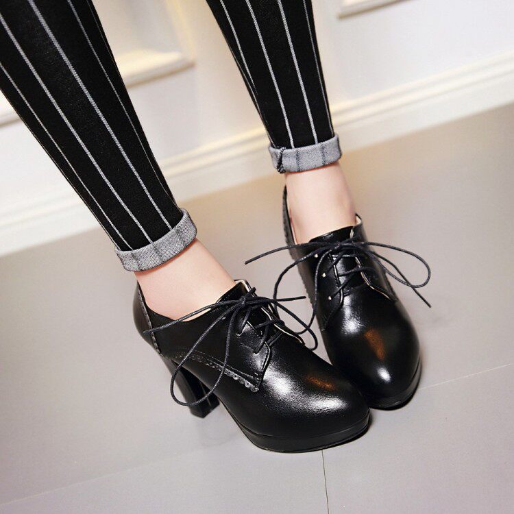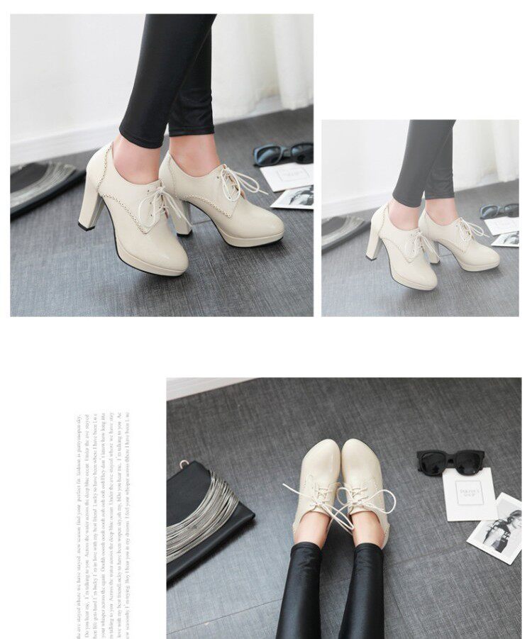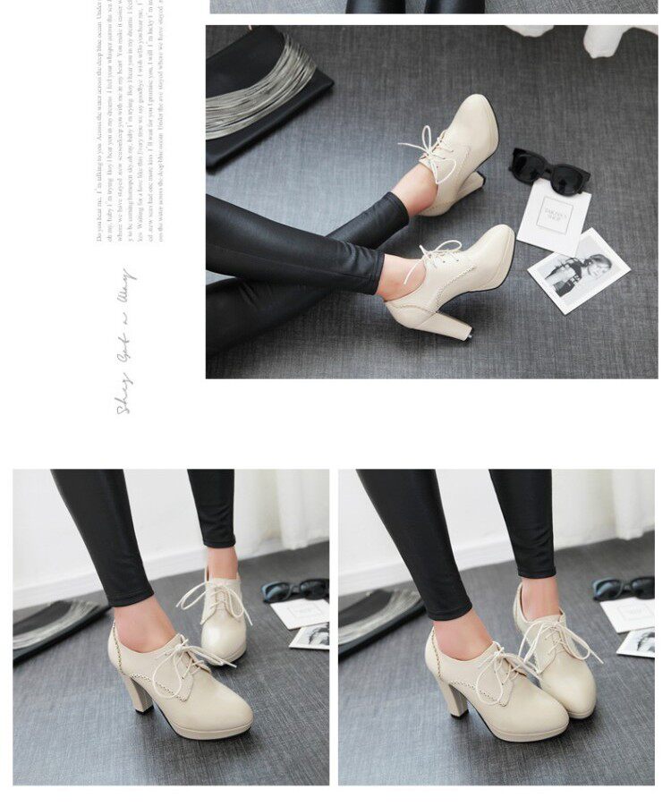 Грубая каблука на высокой каблуке с черной бежевой водонепроницаемой платформой весенняя голова