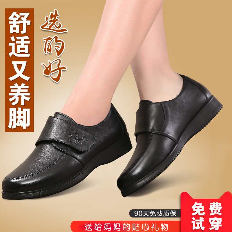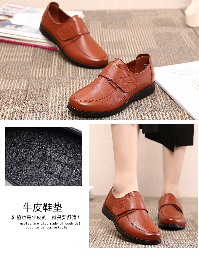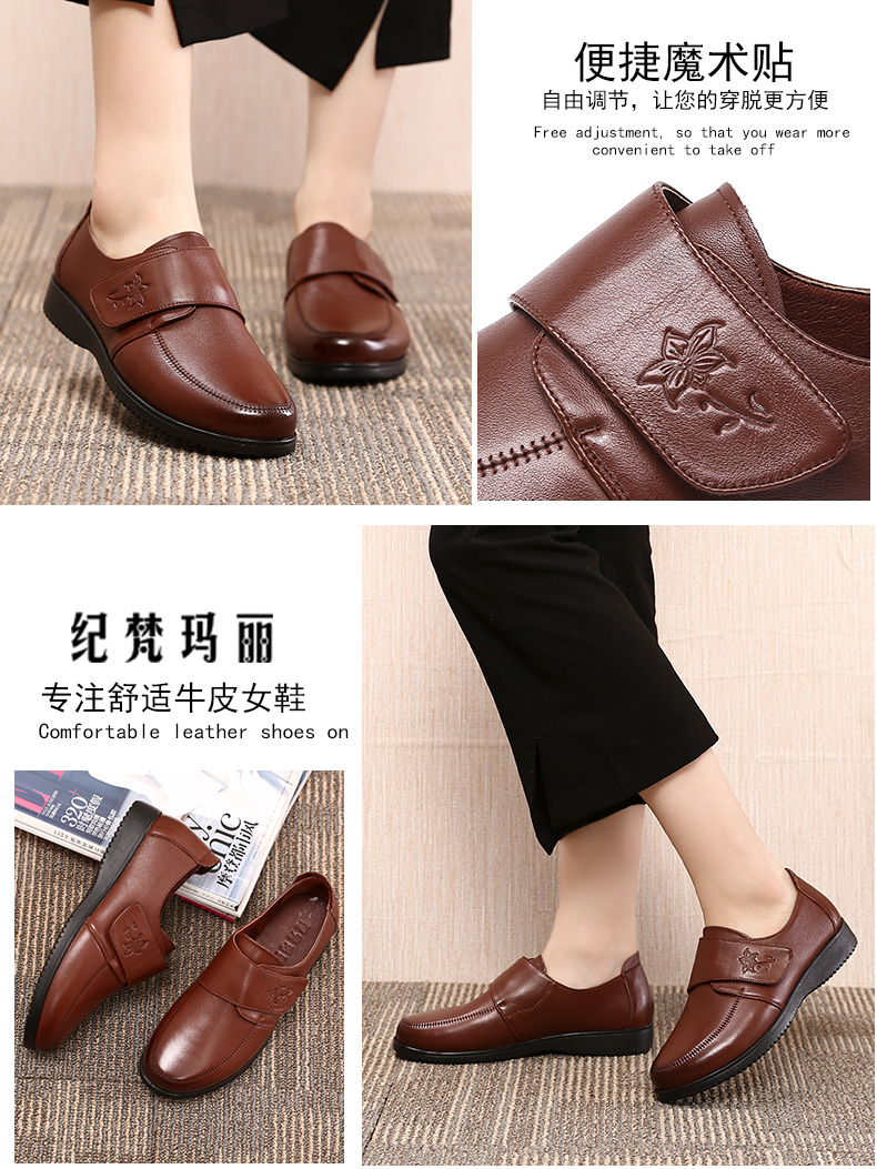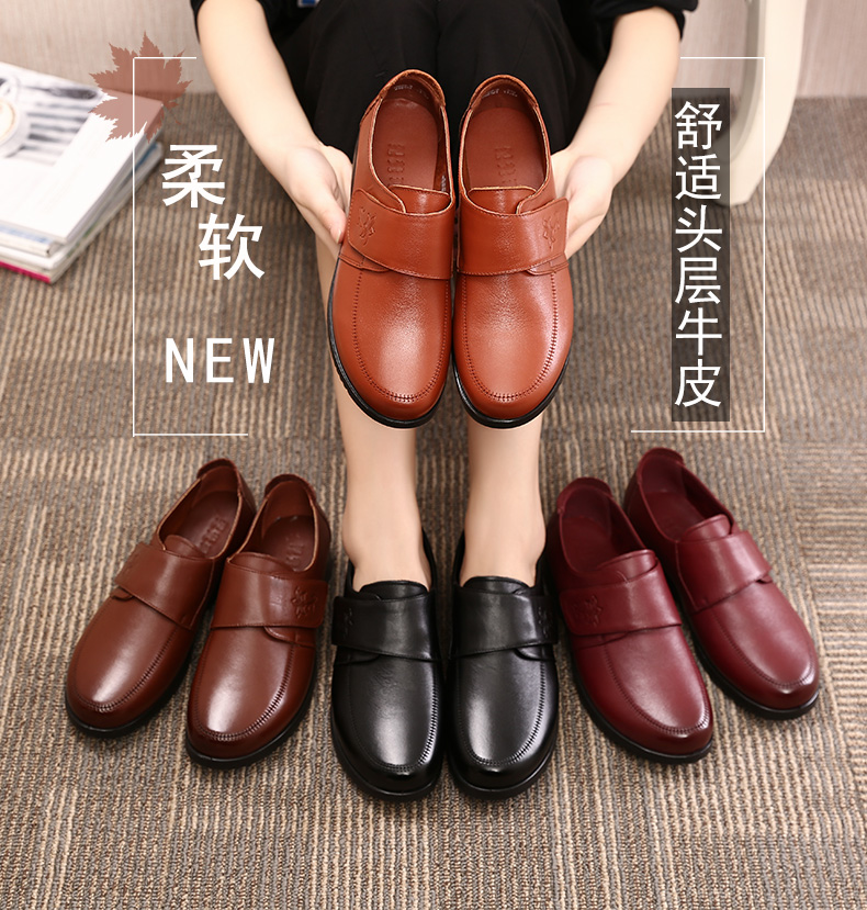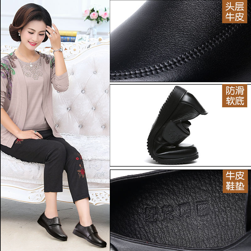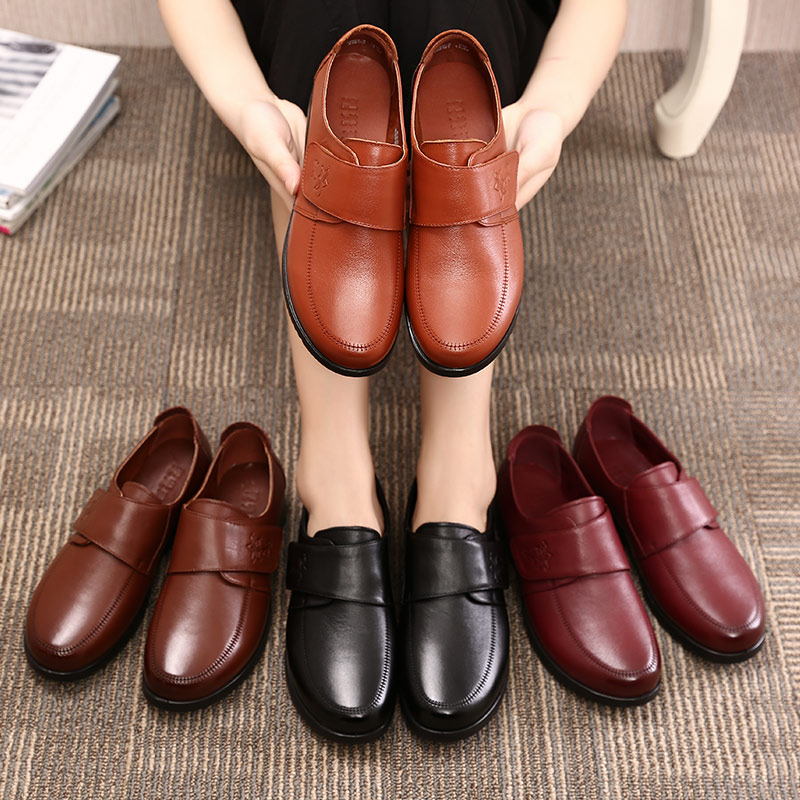 Обувь для матери, демисезонные флисовые туфли для кожаной обуви, из натуральной кожи, мягкая подошва, для среднего возраста, большой размер