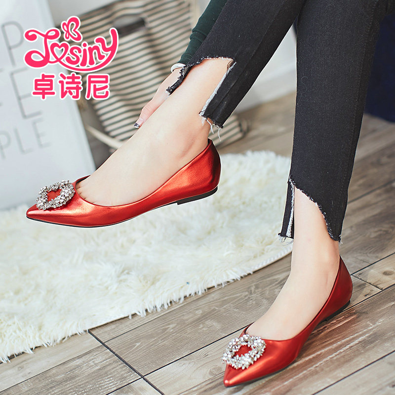 Весенние модные красные свадебные туфли с заостренным носом с низким вырезом, обувь, тренд 2017, тренд сезона, в корейском стиле