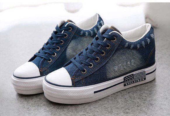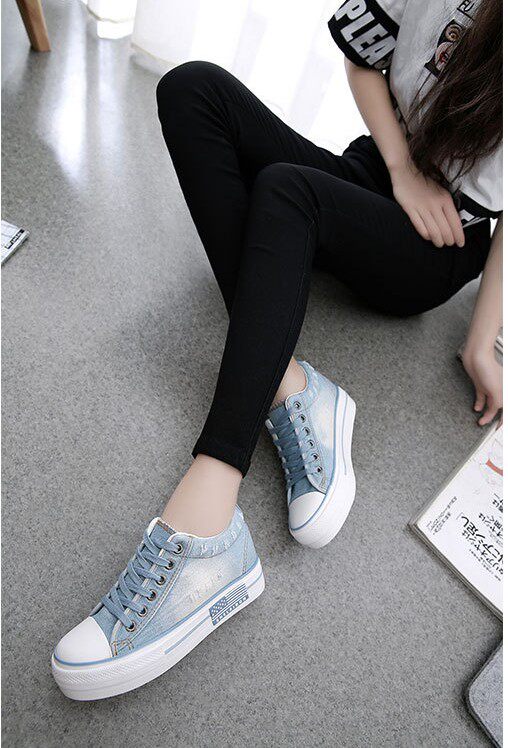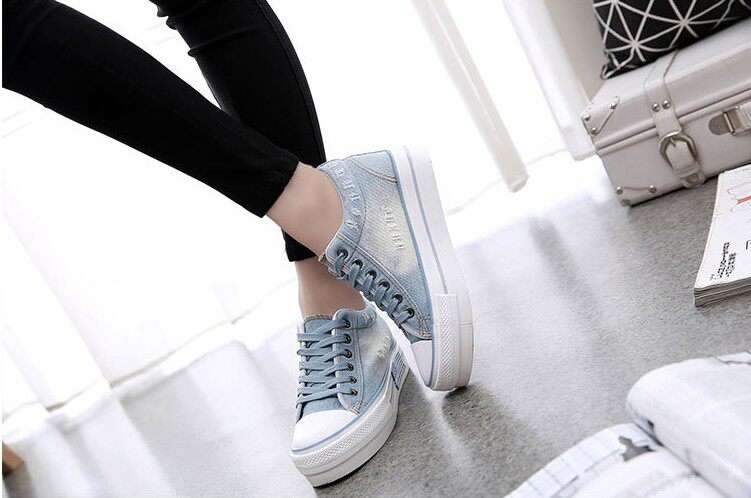 2022 новый весенний стиль, невидимая внутренняя высота, увеличение высоты на 6 см, джинсовая ткань, студенческий стиль, неглубокий нос, женская обувь на шнуровке 3539k