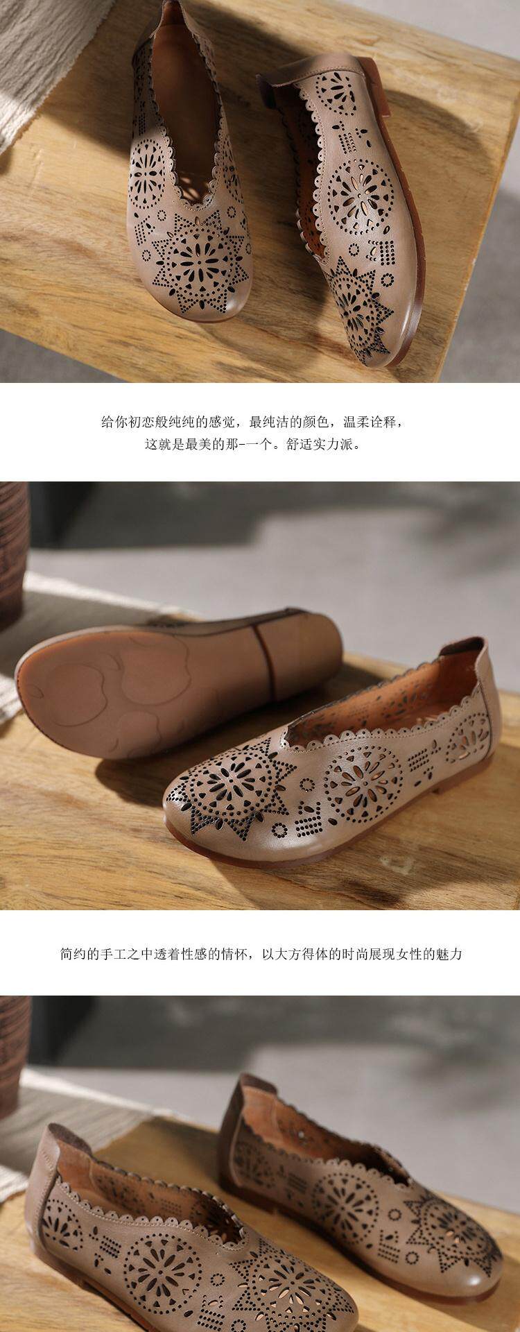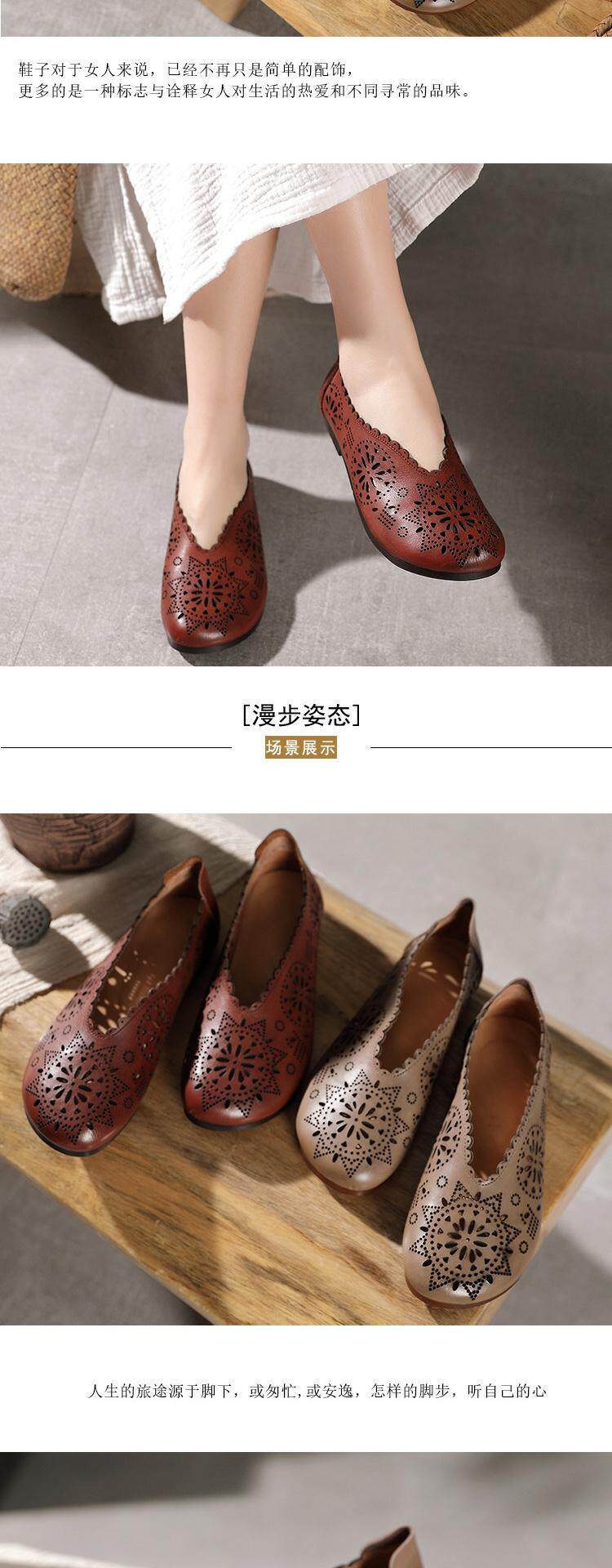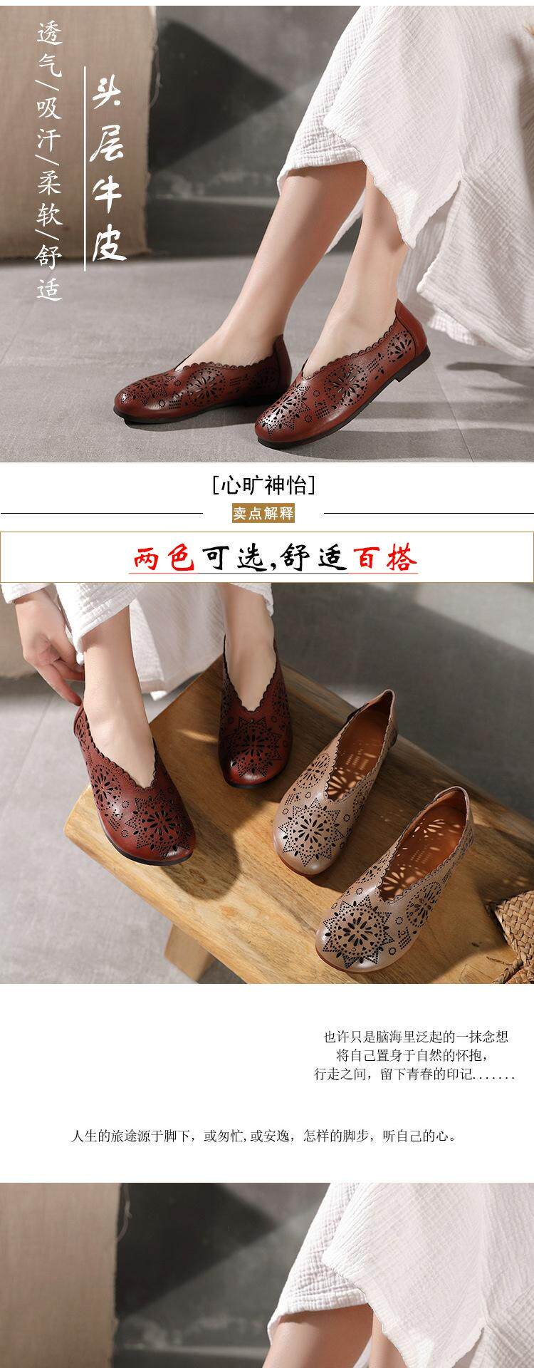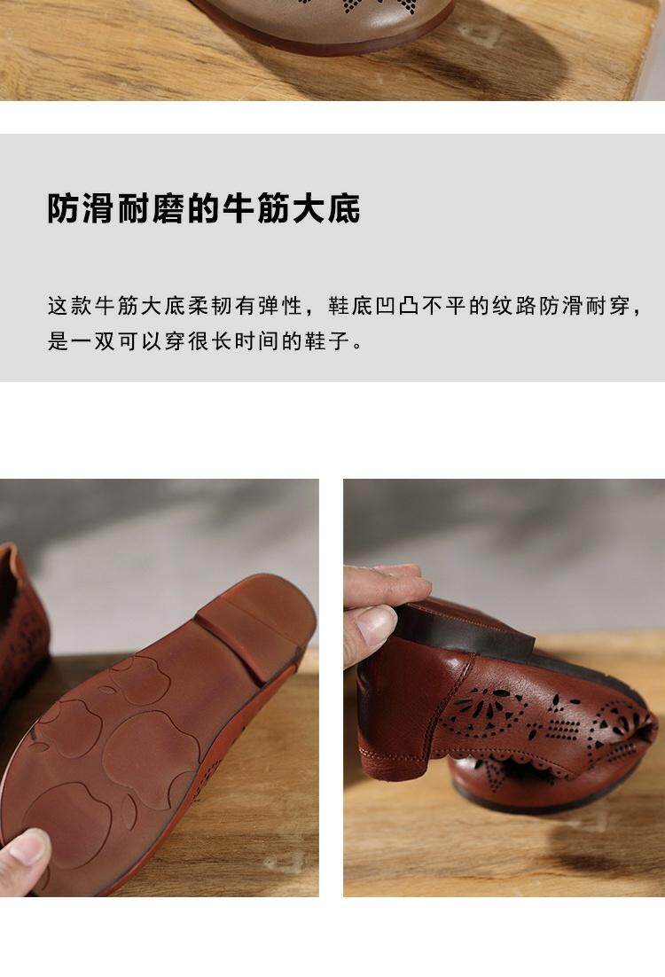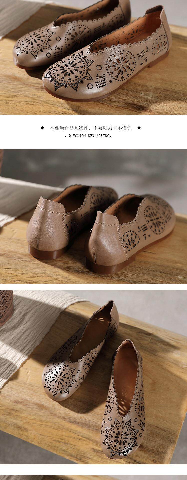 2021 Весна и летняя ретро -ручные дамы одиночные туфли кожаная легкая рот женская обувь плоская каблука мягкие дно кожаные полые отверстия Tide Tide