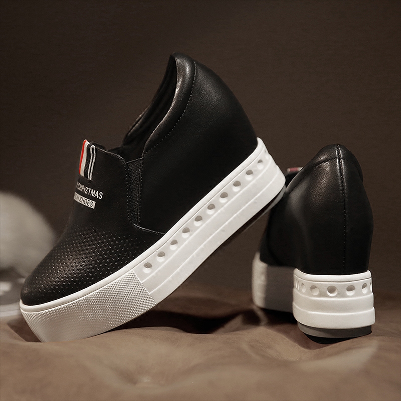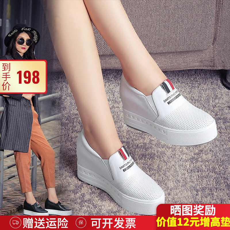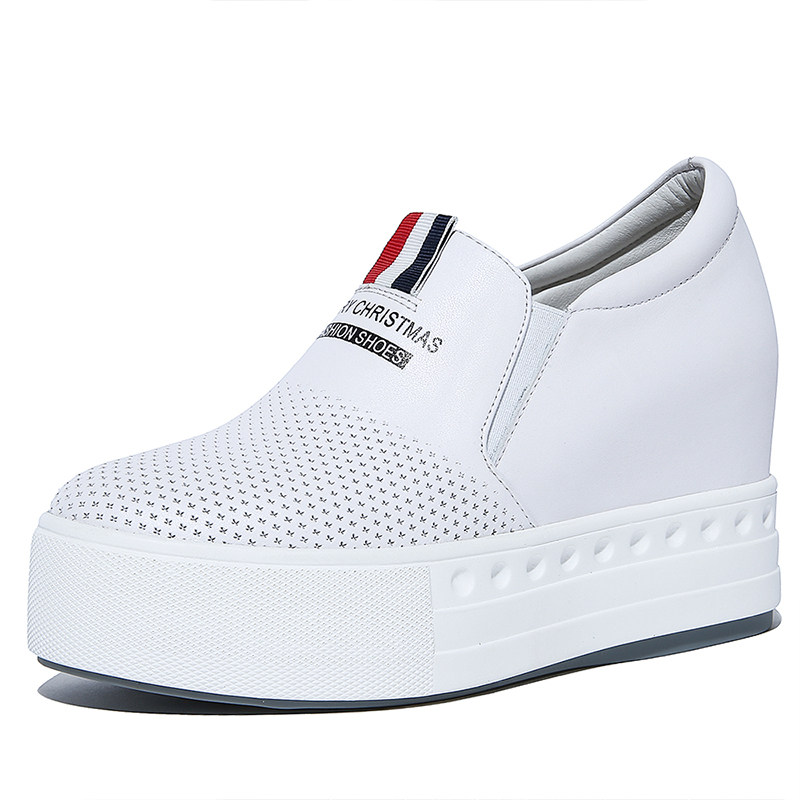 Демисезонные высокие лоферы на платформе, спортивная обувь, белая обувь, из натуральной кожи, 8см